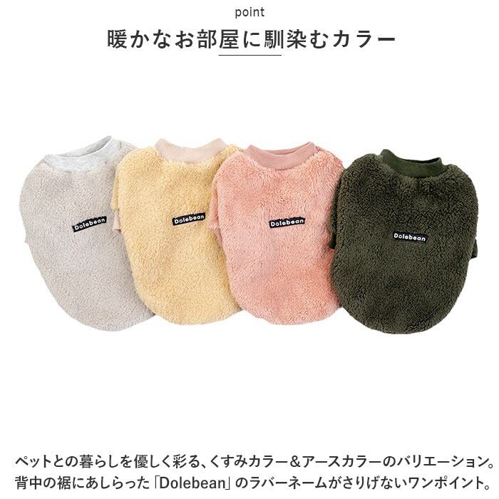 ・ペットとの暮らしを優しく彩る、くすみカラー&アースカラーのバリエーション。背中の裾にあしらった「Dolebean」のラバーネームがさりげないワンポイント。