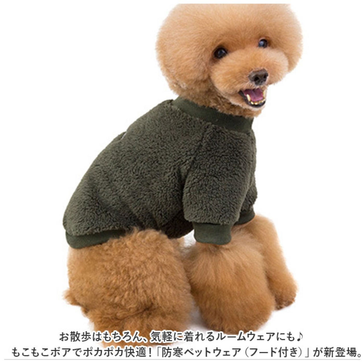 ・お散歩はもちろん、気軽に着れるルームウェアにも♪もこもこボアでポカポカ快適!「防寒ペットウェア(フード付き)」が新登場。