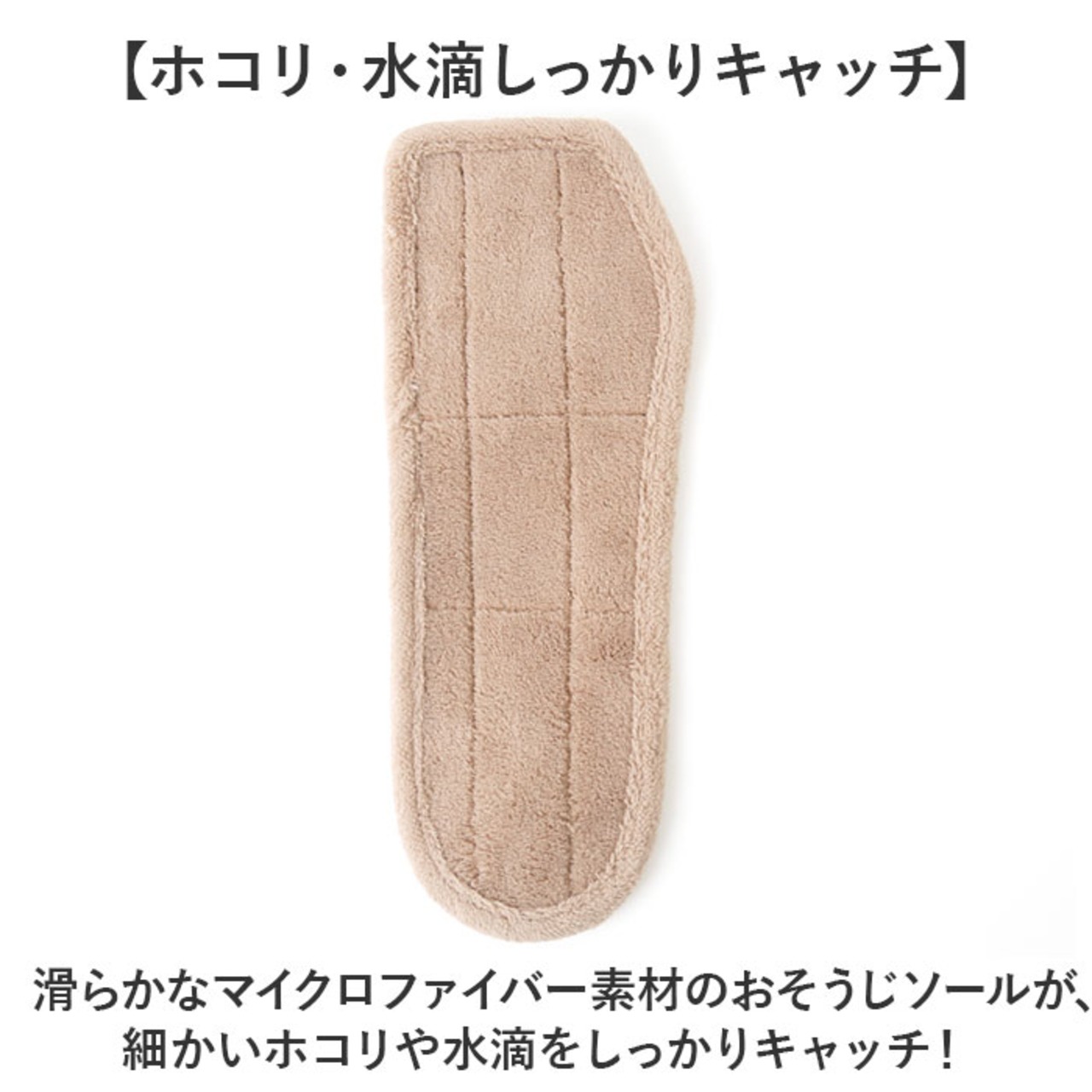 ・滑らかなマイクロファイバー素材のおそうじソールが、細かいホコリや水滴をしっかりキャッチ!