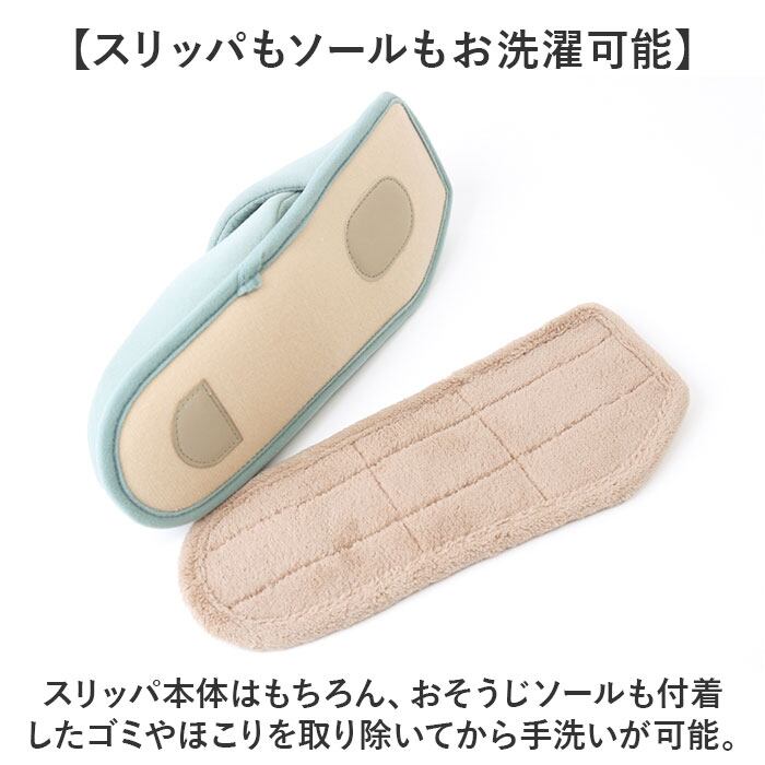 ・スリッパ本体はもちろん、おそうじソールも付着したゴミやほこりを取り除いてから手洗いが可能。