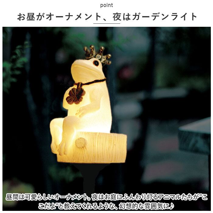 ・昼間は可愛らしいオーナメント。夜はお庭にふんわり灯るアニマルたちが”ここだよ”と教えてくれるような、幻想的な雰囲気に♪