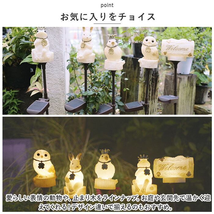 ・愛らしい表情の動物や、止まり木をラインナップ。お庭や玄関先で温かく迎えてくれる!デザイン違いで揃えるのもおすすめ。