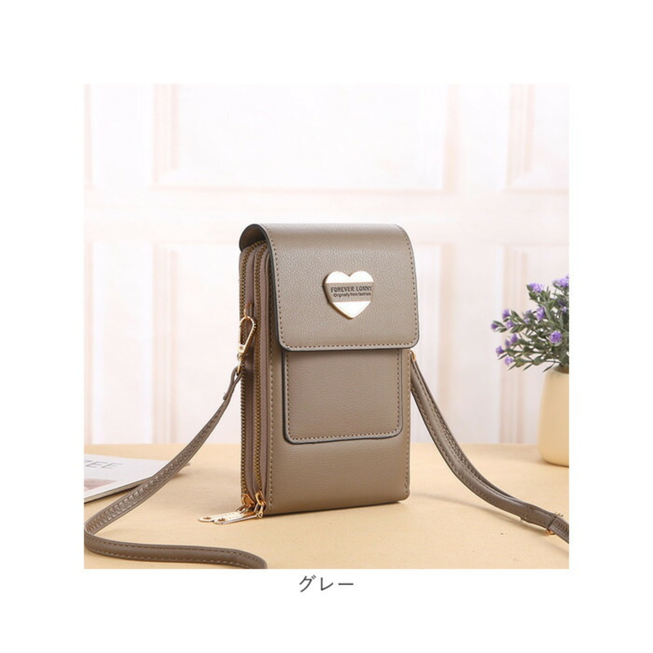 ・表面にはソフトなPUレザー素材を使用し、落ち着きのある仕上がりに。フロントのハート型プレートがアクセント♪