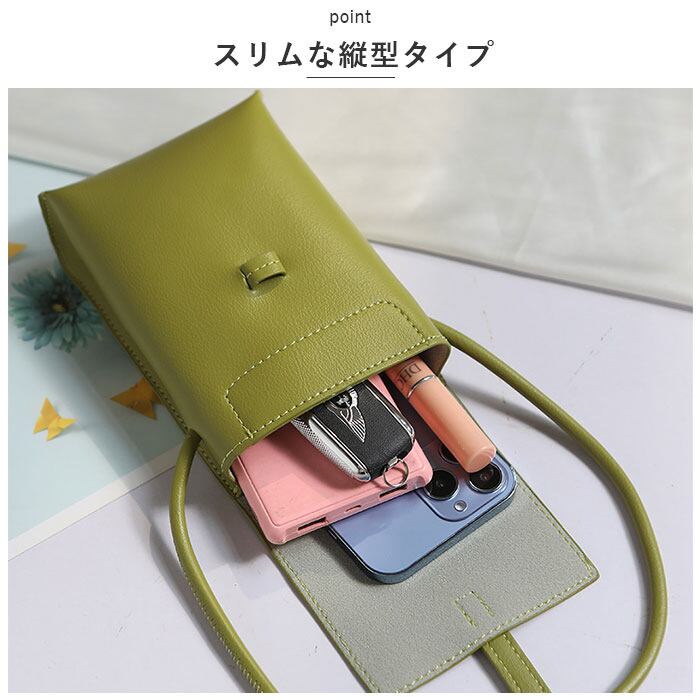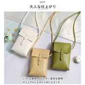 ・お出かけ時にサッと持ち出して、身軽にGO!スマホがすっぽり収まる縦型仕様で、薄手のハンカチや小銭入れも収納できるサイズ感。