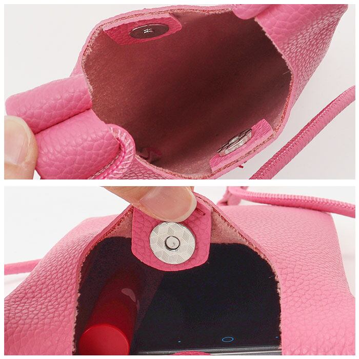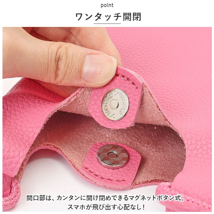 ・開口部は、カンタンに開け閉めできるマグネットボタン式。スマホが飛び出す心配なし!