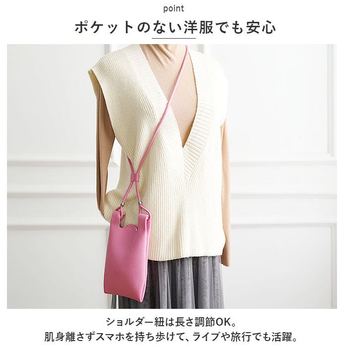 ・ショルダー紐は長さ調節OK。肌身離さずスマホを持ち歩けて、ライブや旅行でも活躍。
