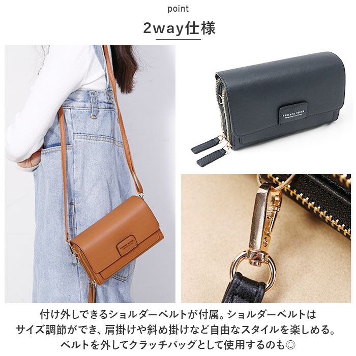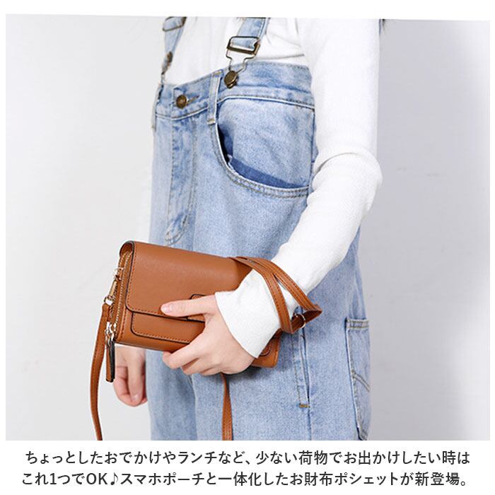・ちょっとしたおでかけやランチなど、少ない荷物でお出かけしたい時はこれ1つでOK♪スマホポーチと一体化したお財布ポシェットが新登場。