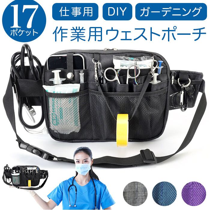 ウェストポーチ カラビナ 作業用 通販 ナースバッグ ナースバック ウェストバッグ ウェストバック エプロンバッグ エプロンポーチ ナースポーチ かわいい おしゃれ オシャレ レーディース メンズ 仕事用 看護師 介護士 携帯電話ケース 男女兼用 庭仕事