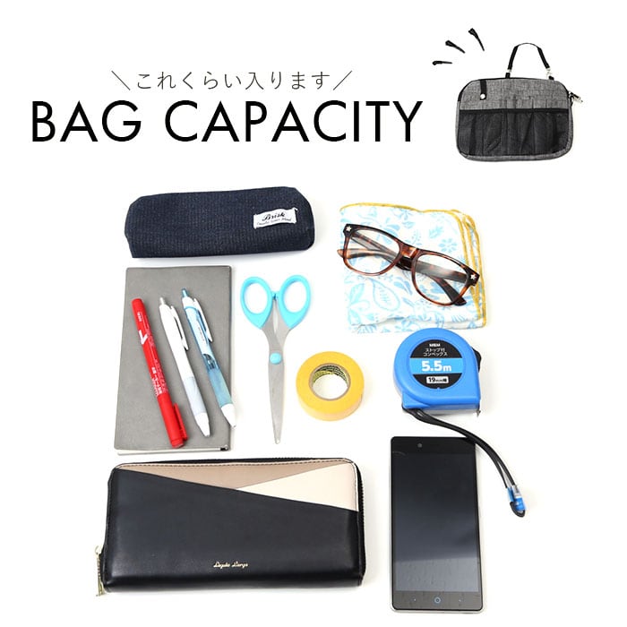 ・メイン収納:オープンポケット×1、ファスナーポケット×1