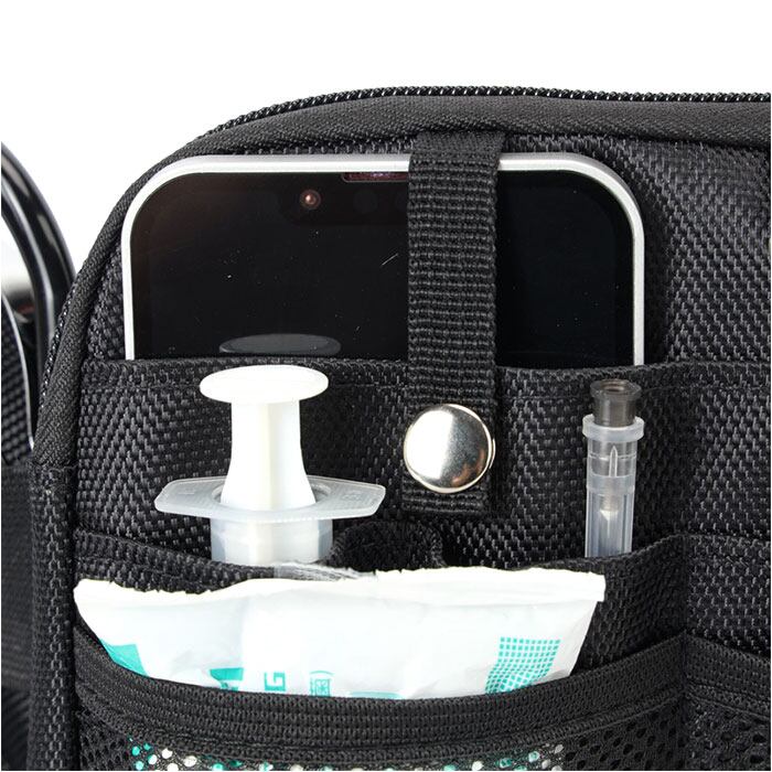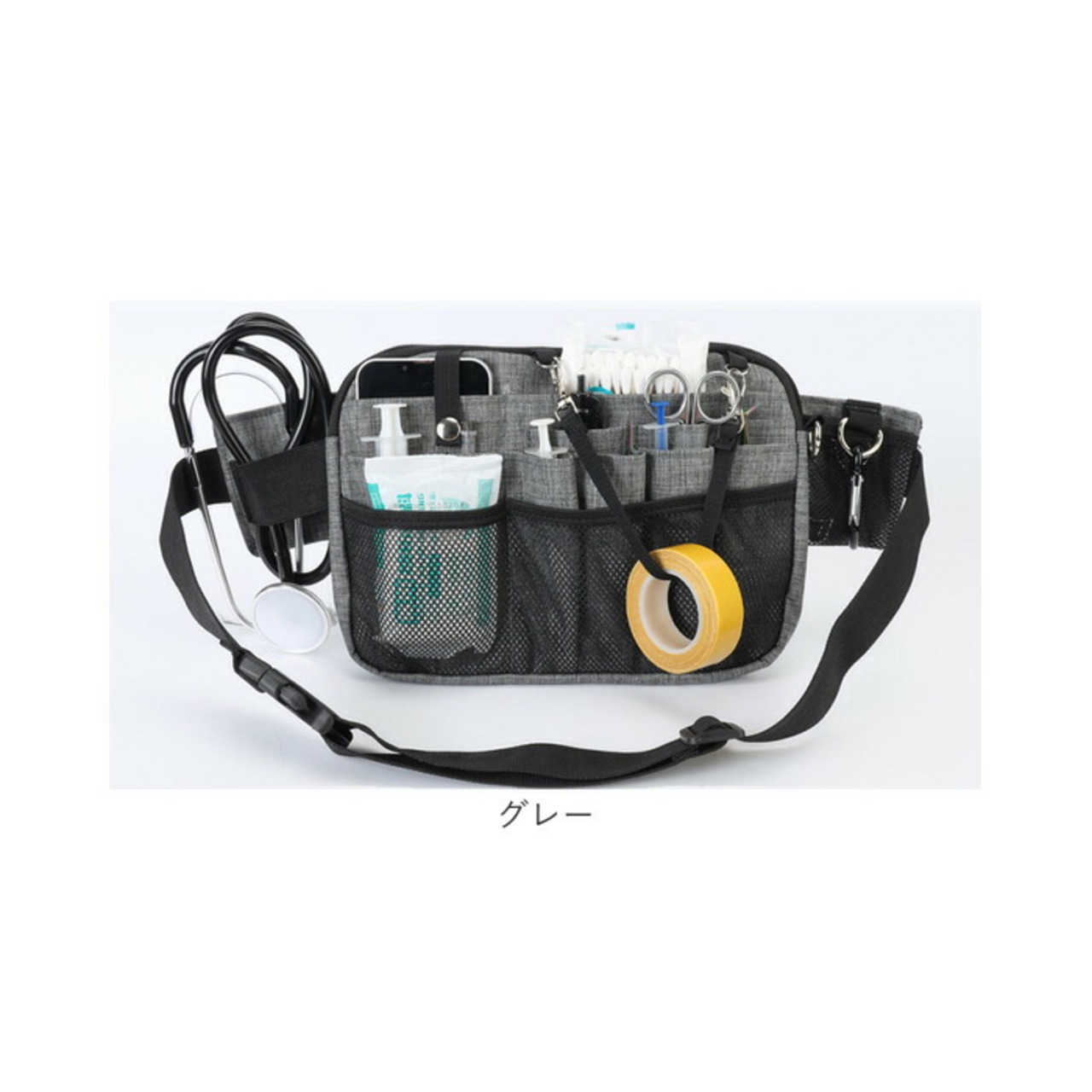 ・聴診器やシリンジなどを小分けにして収納できる。ストラップにテープを通すことも可能。