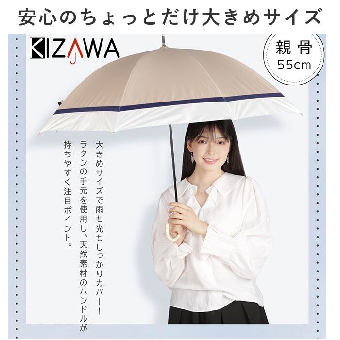 ・親骨約55センチの、ちょっとだけ大きめのサイズ感。軽量で持ち歩きやすいけどちゃんとカバー◎