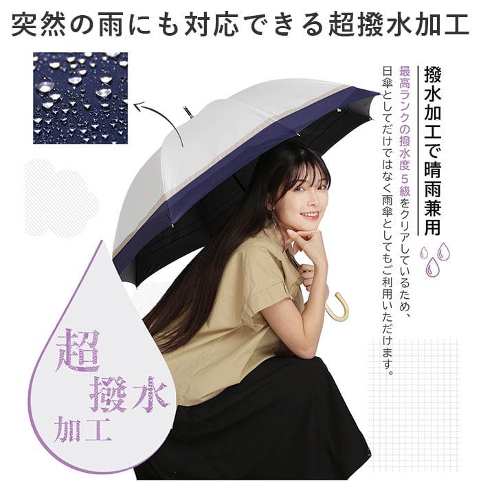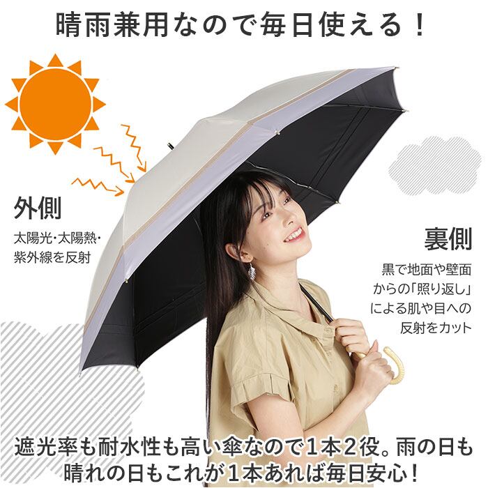 ・遮光率も耐水性も高い傘なので1本2役。雨の日も晴れの日もこれが1本あれば毎日安心!