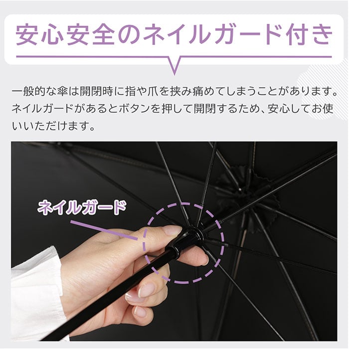 ・ゆっくりとひらくことができる、安心の手開きタイプ。ネイルガードつきで指を挟みにくい。