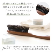 ・天然毛(豚毛)の先を段違いにずらして植毛することで、地肌までしっかりとブラシが通るデザインに。