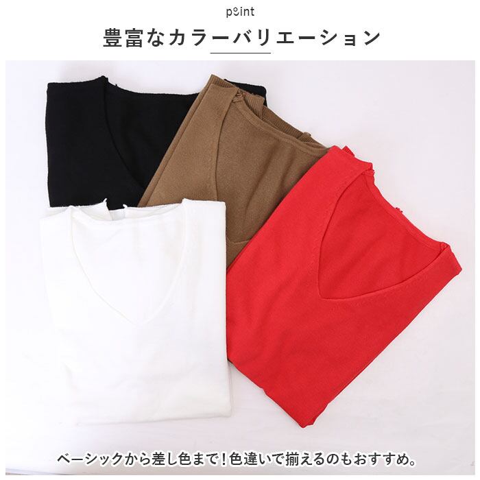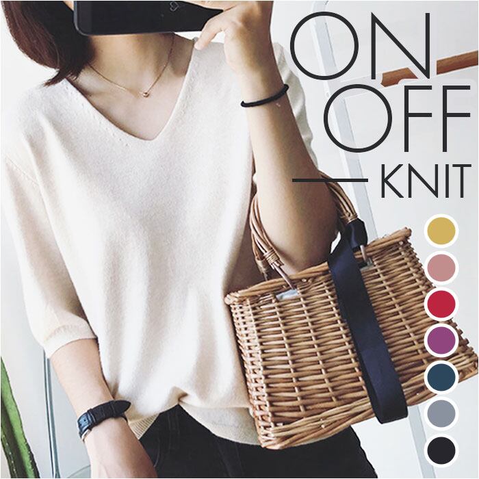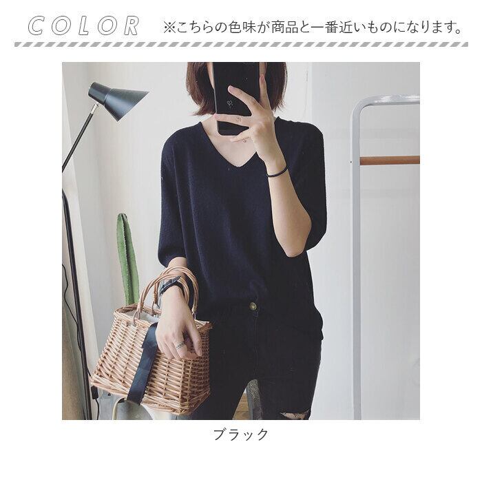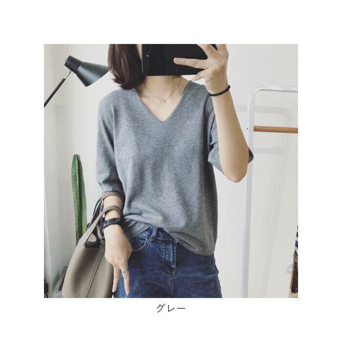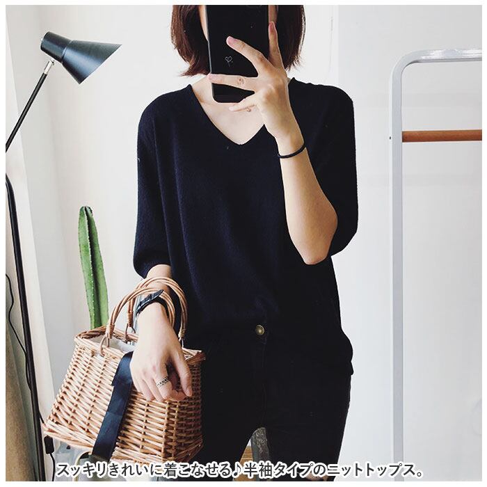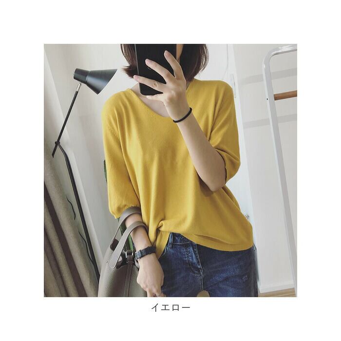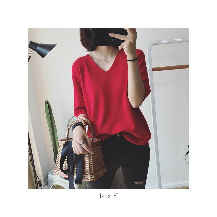 ニット レディース vネック 半袖 カジュアル knit000