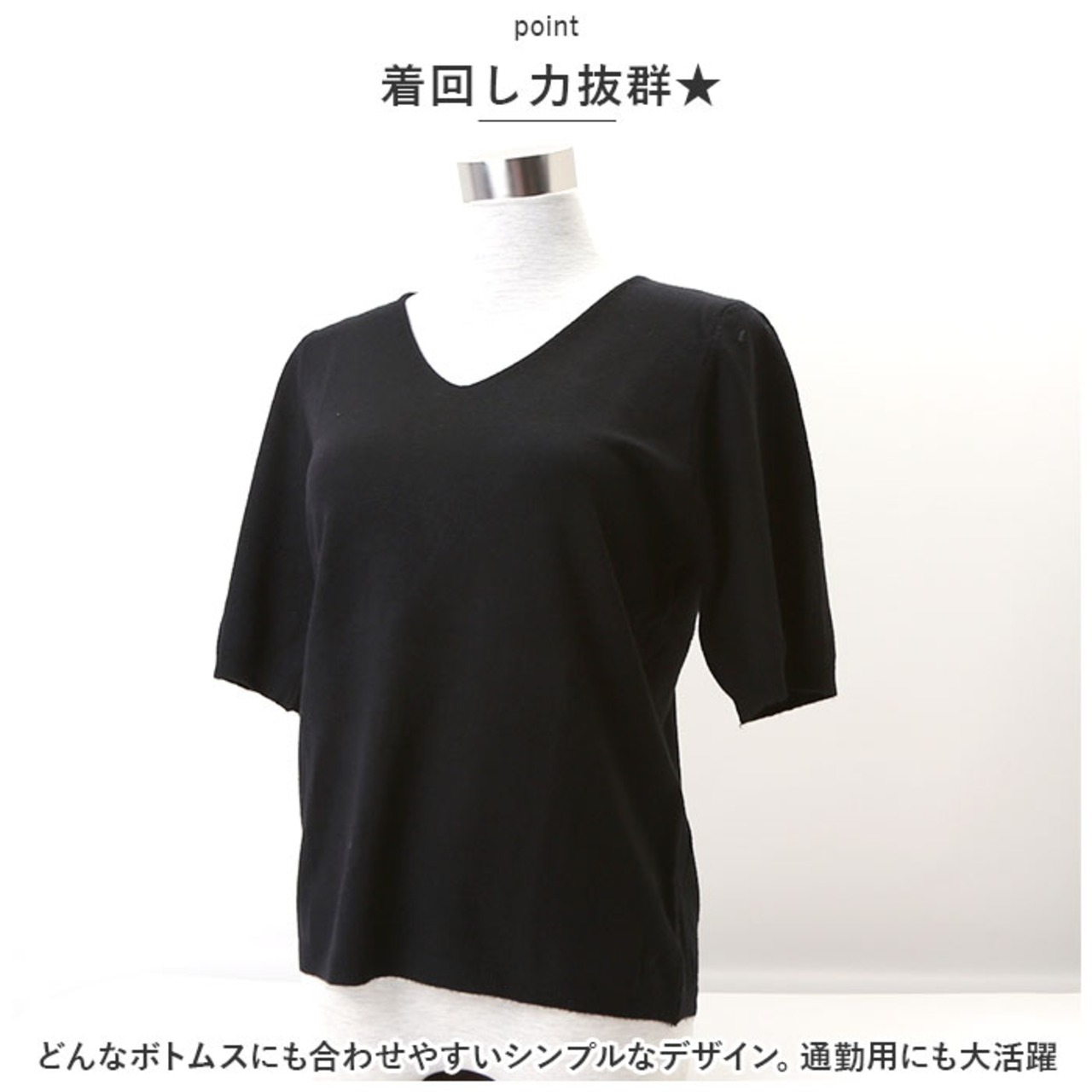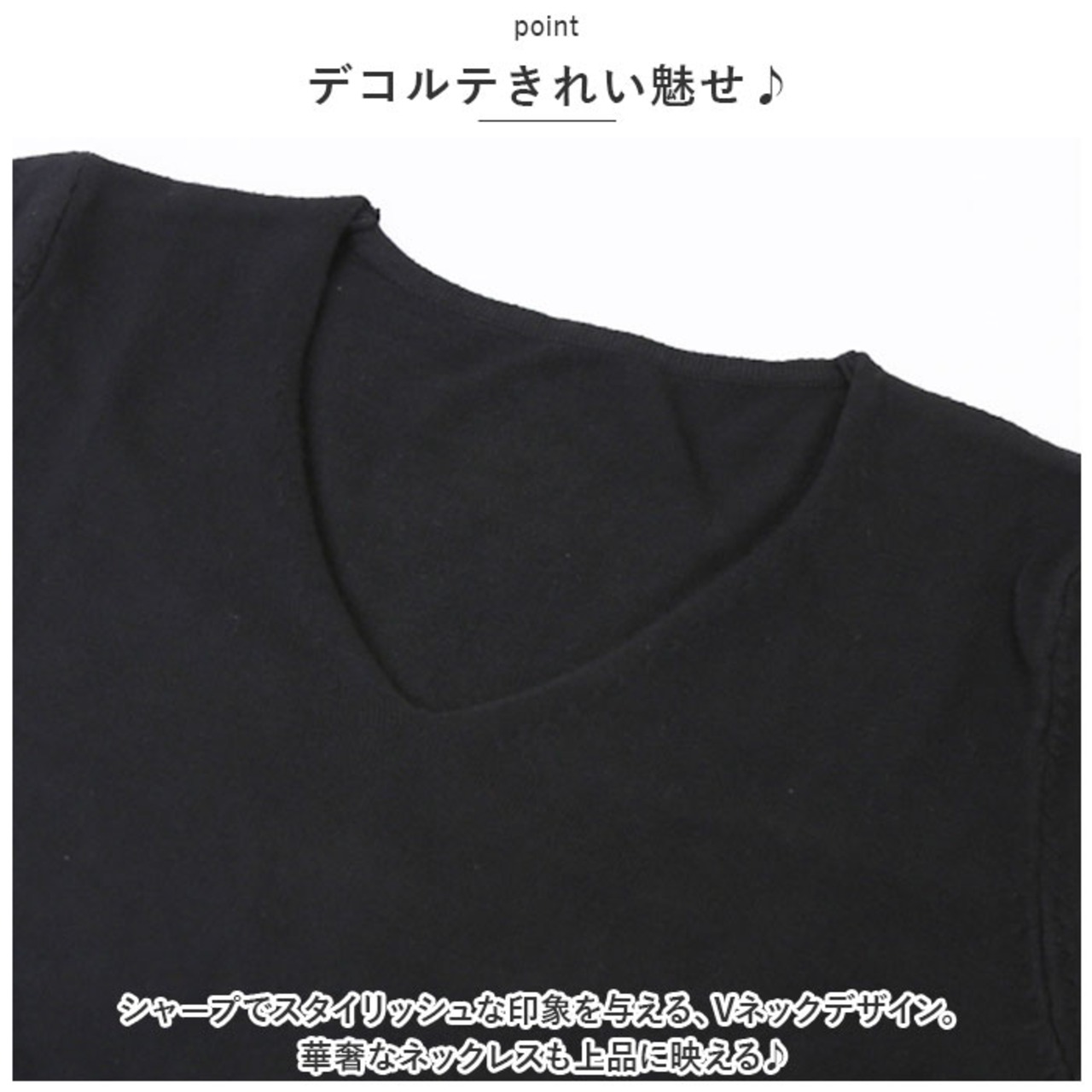 ・シャープでスタイリッシュな印象を与える、Vネックデザイン。華奢なネックレスも上品に映える♪