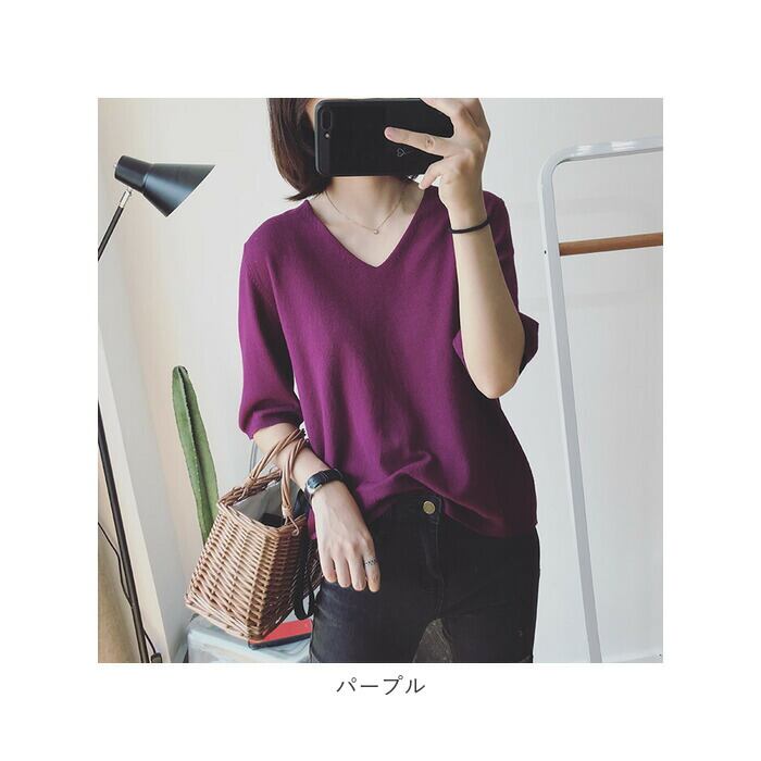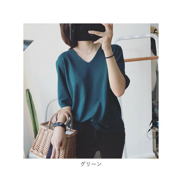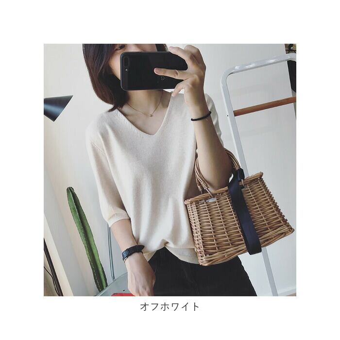 サマーニット 7分袖 レディース 通販 ニット 七分袖 トップス 春夏 ナチュラル きれいめ カットソー 5分袖 五分袖 おしゃれ 上品 きちんと 無地 シンプル 通勤 オフィス カジュアル Vネック 七分袖ニット レディースファッション