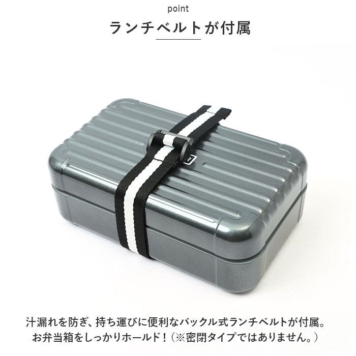 ・汁漏れを防ぎ、持ち運びに便利なバックル式ランチベルトが付属。お弁当箱をしっかりホールド!(※密閉タイプではありません。)