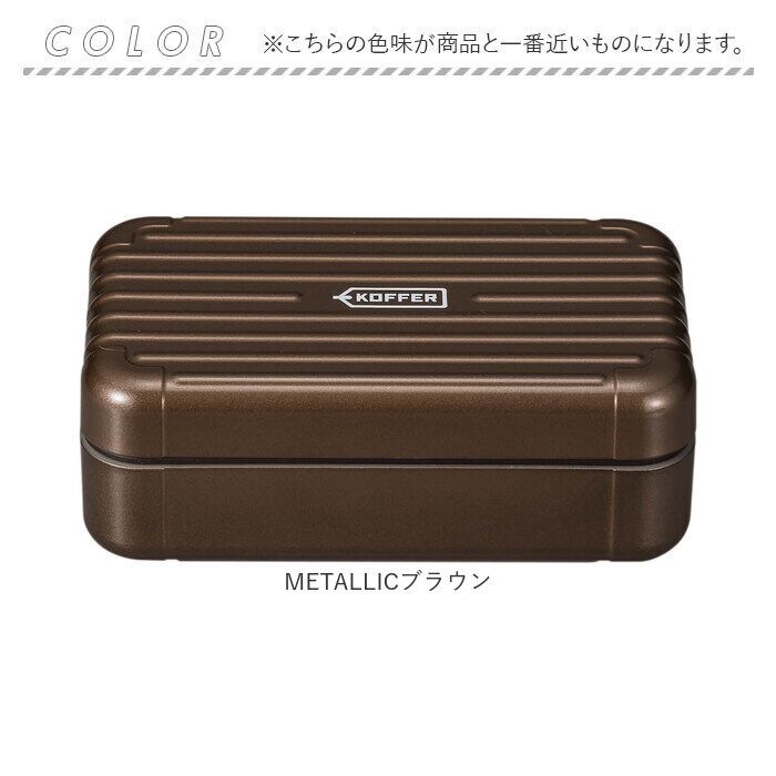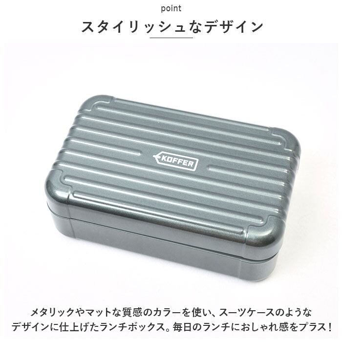 ・メタリックやマットな質感のカラーを使い、スーツケースのようなデザインに仕上げたランチボックス。毎日のランチにおしゃれ感をプラス!