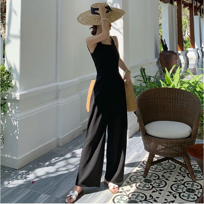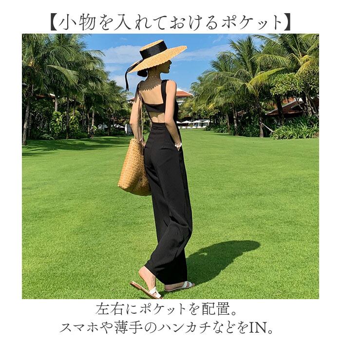 オールインワン サロペット 通販 パンツ ロング丈 ズボン オーバーオール ワイドパンツ 大人 レディース きれいめ ハイウエスト サイドファスナー カジュアル シンプル 無地 お出かけ 通勤 通学 おしゃれ かわいい レディースファッション