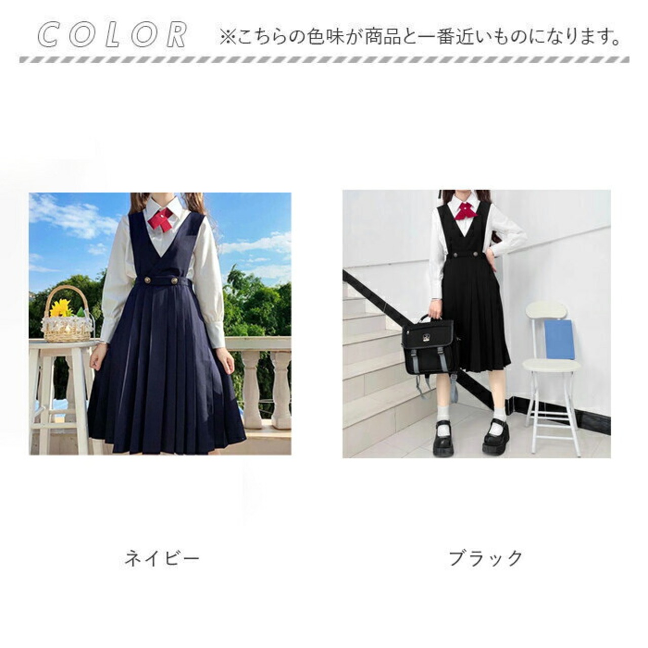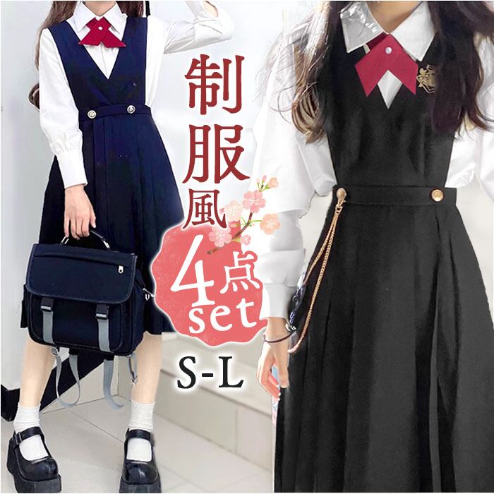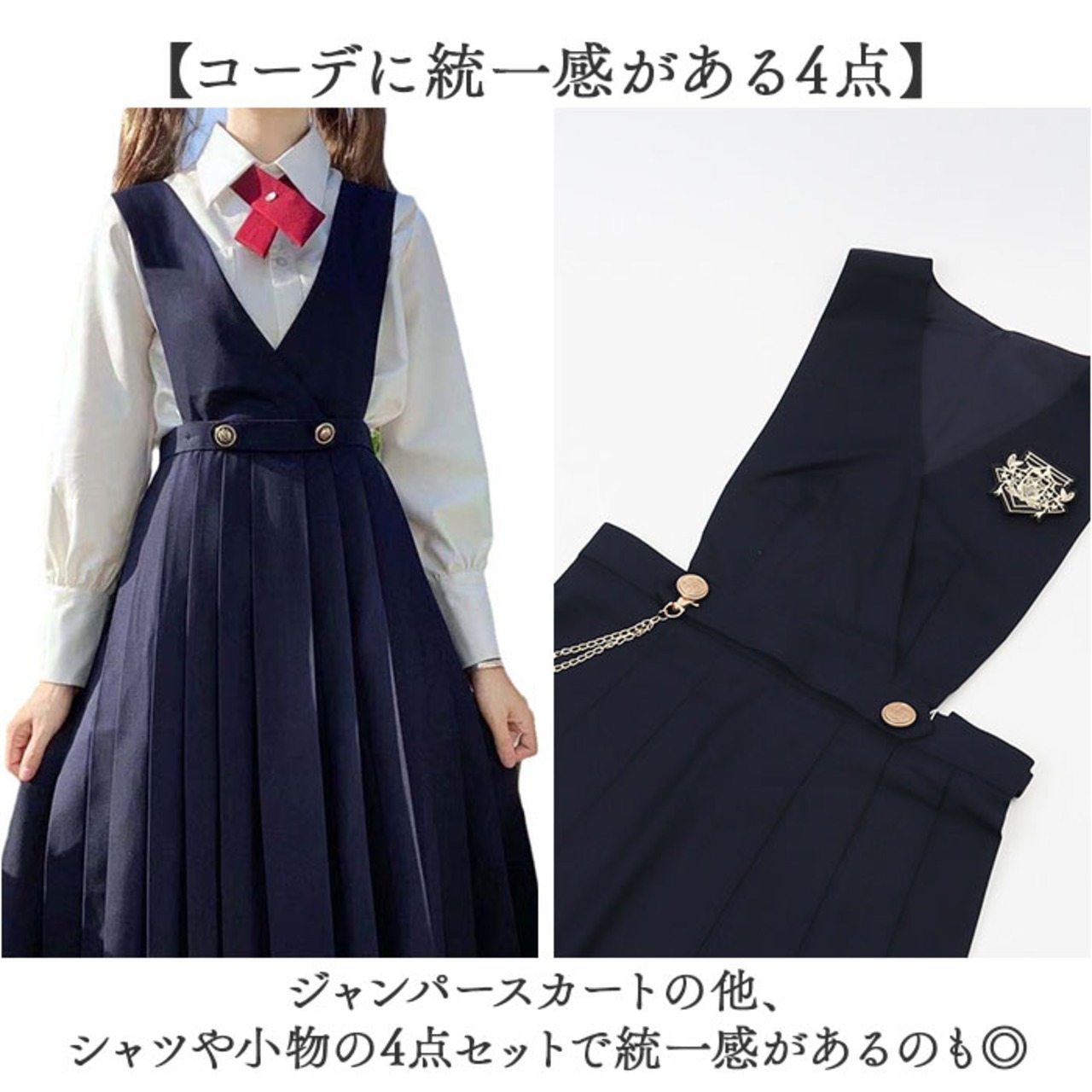 ・ジャンパースカートの他、シャツや小物の4点セットで統一感があるのも◎