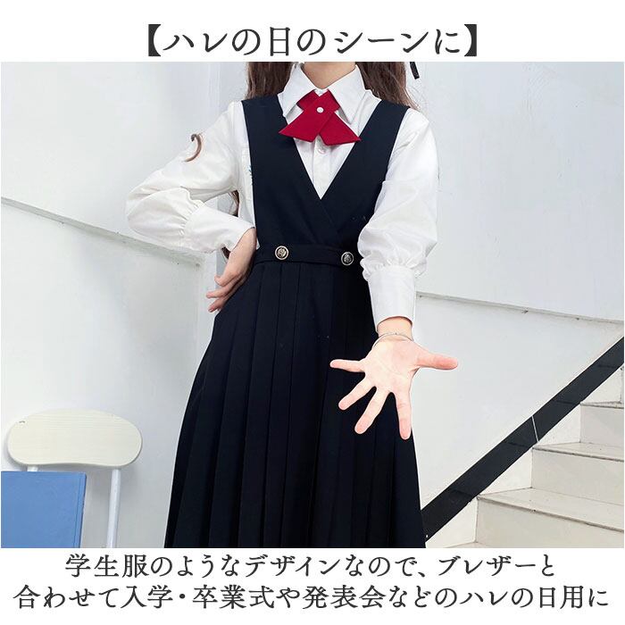 ・ジャンパースカートにはプリーツ加工を施し、オトナっぽさとかわいらしさを両立☆