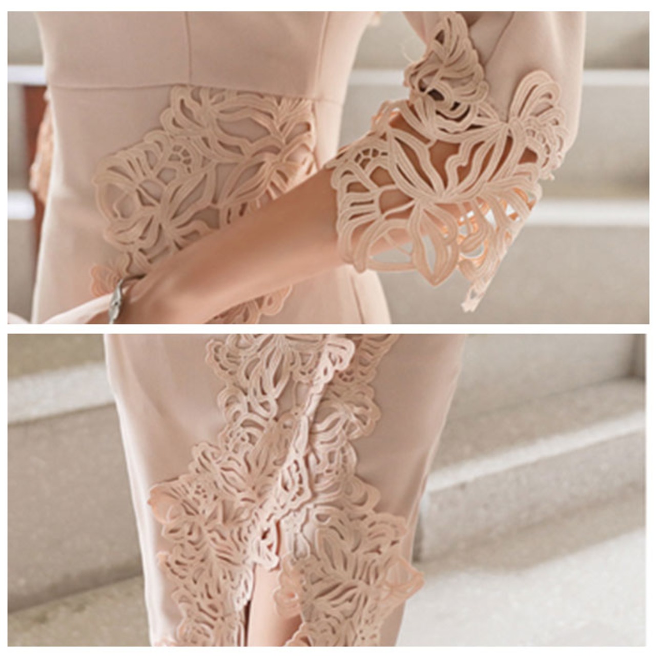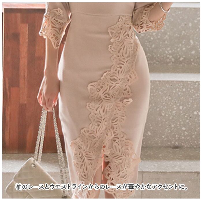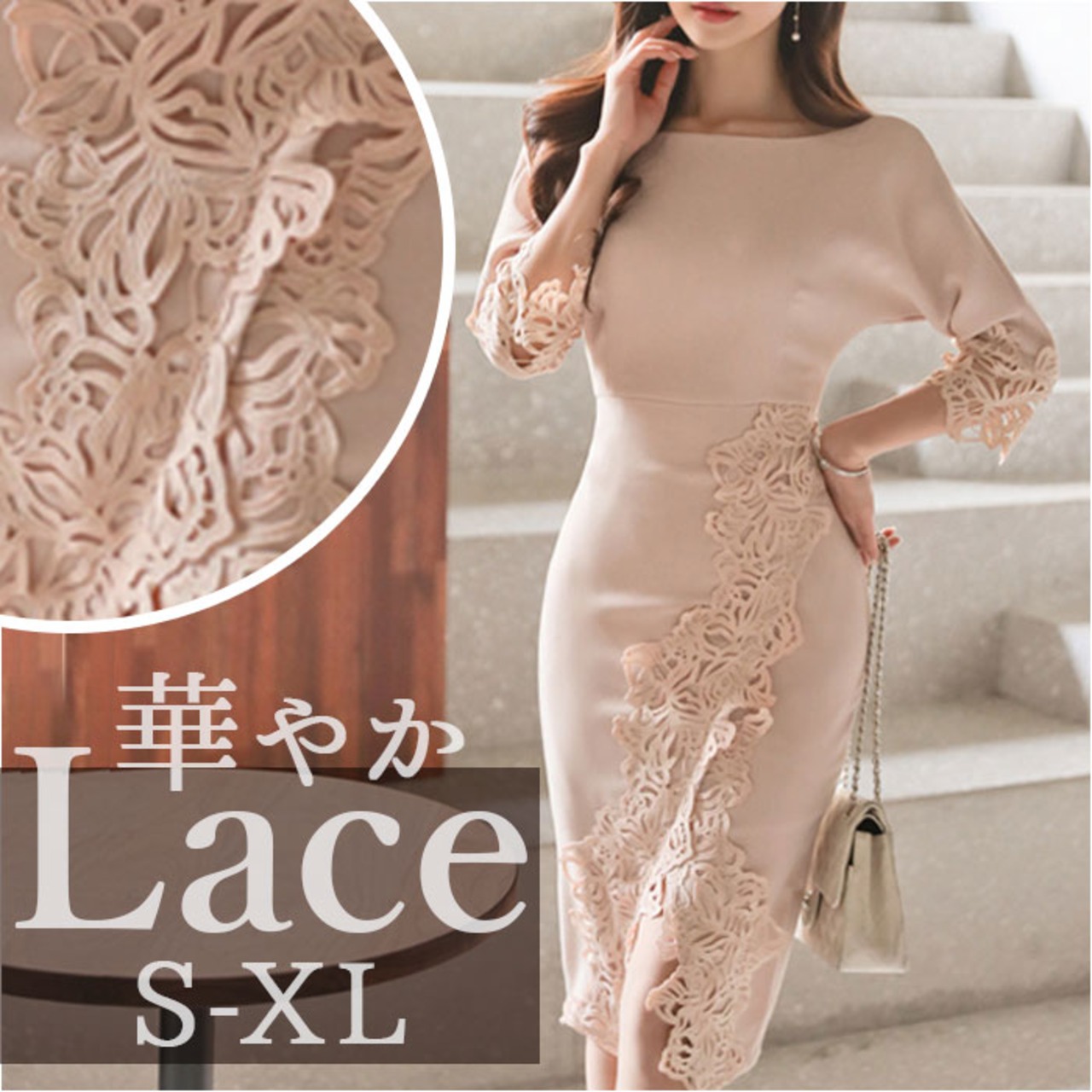 タイトワンピース フォーマル 姫系 タイト ワンピース 通販 パーティドレス ドレス ひざ丈 7分袖 Vネック レース切替 ミニワンピース ミドル丈 ミディアム丈 セクシー パーティー 上品 お嬢様 韓国 ファッション 結婚式