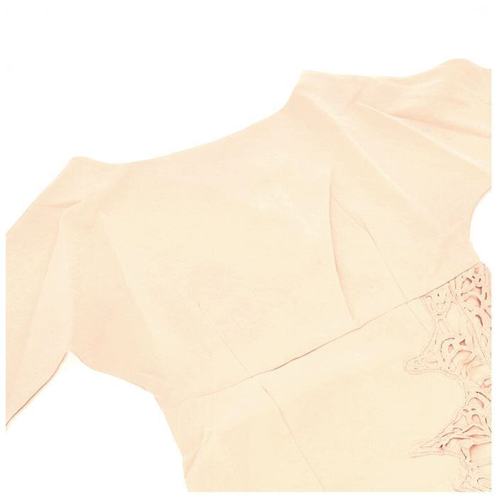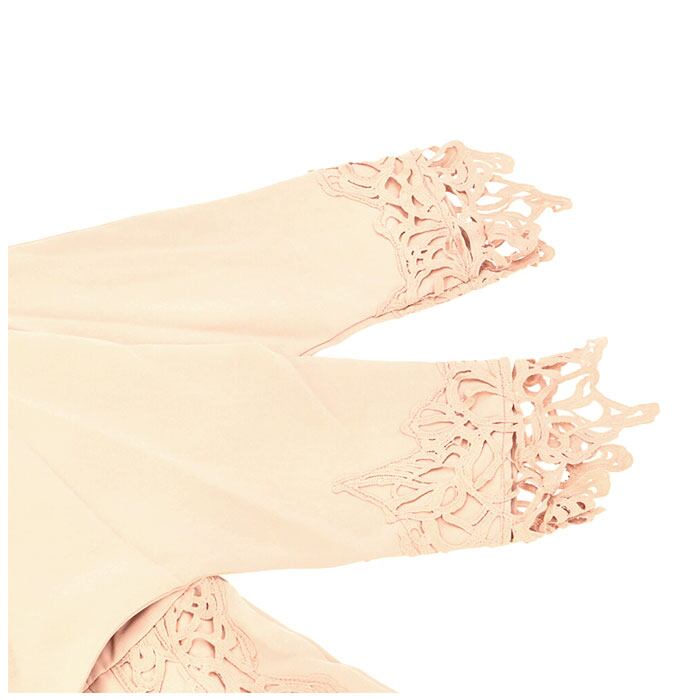 ・袖のレースとウエストラインからのレースが華やかなアクセントに。