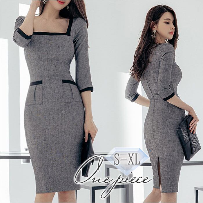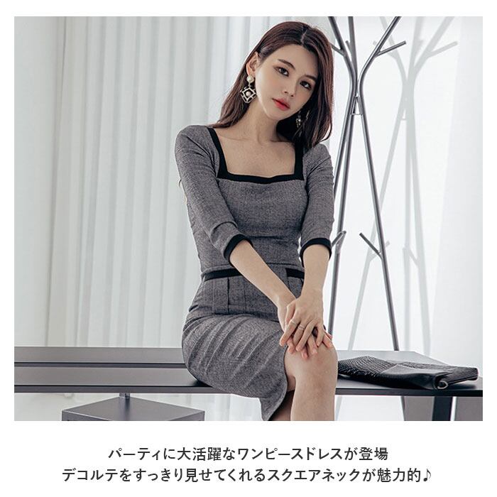 タイトワンピース ミニワンピース レディース 通販 ワンピース 姫系ワンピース ひざ丈 5分袖 ミディアム丈 ミドル丈 セクシー スクエアネック 春 上品 姫系 お嬢様 パーティ 二次会 結婚式 韓国