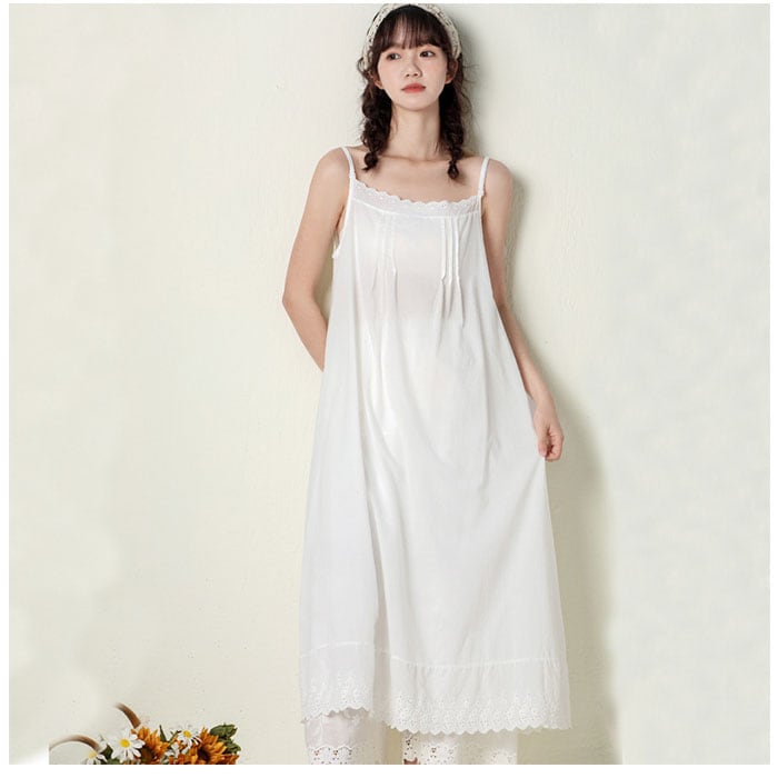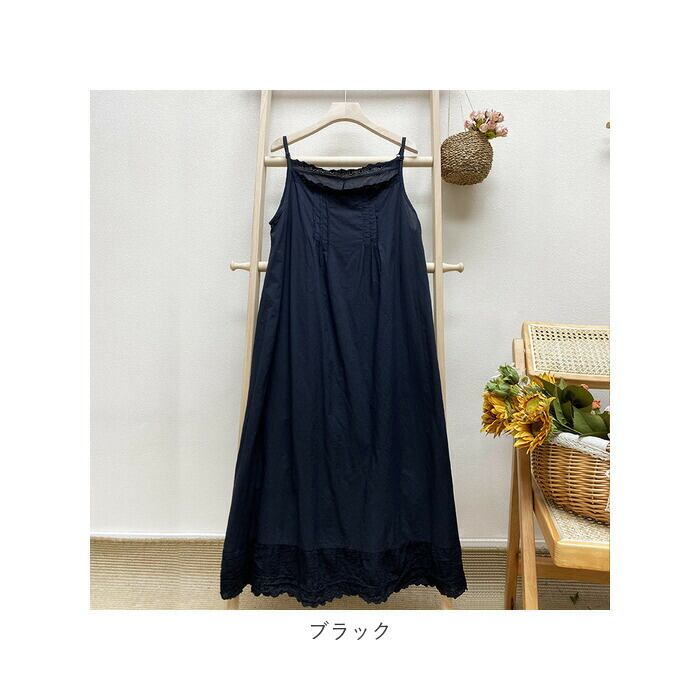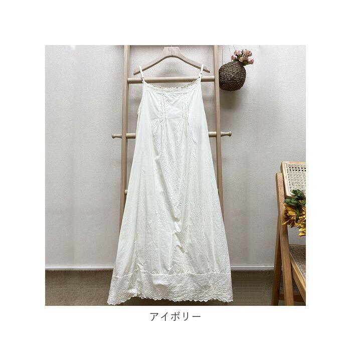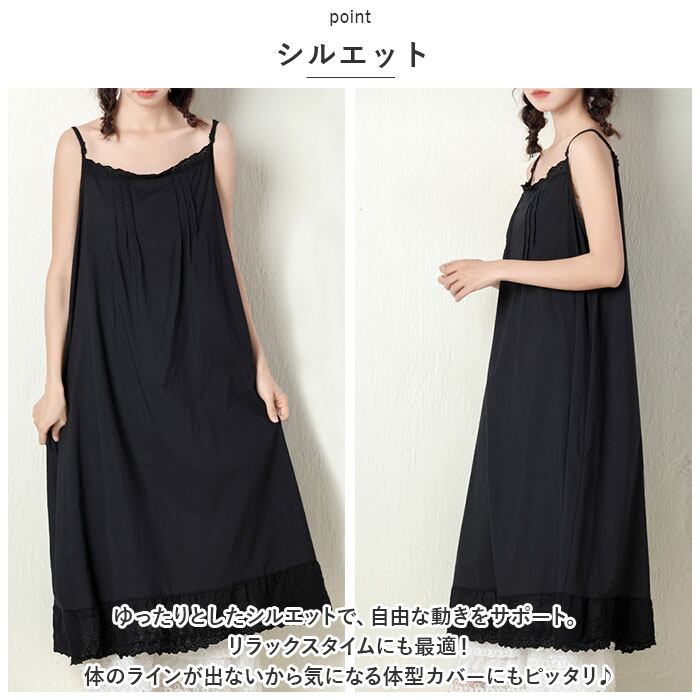 キャミワンピ ロング 通販 ワンピース レディース ミモレ丈 キャミワンピース キャミソールワンピース キャミソールワンピ ナチュラル インナーワンピース 綿 コットン インナーワンピ 春 夏 ペチコート シンプル 裾 レース レディースファッション