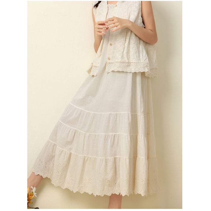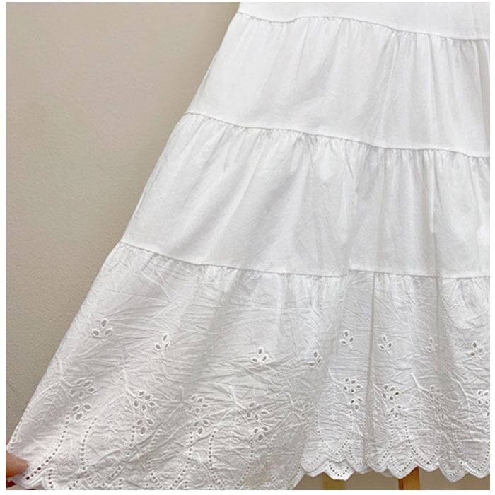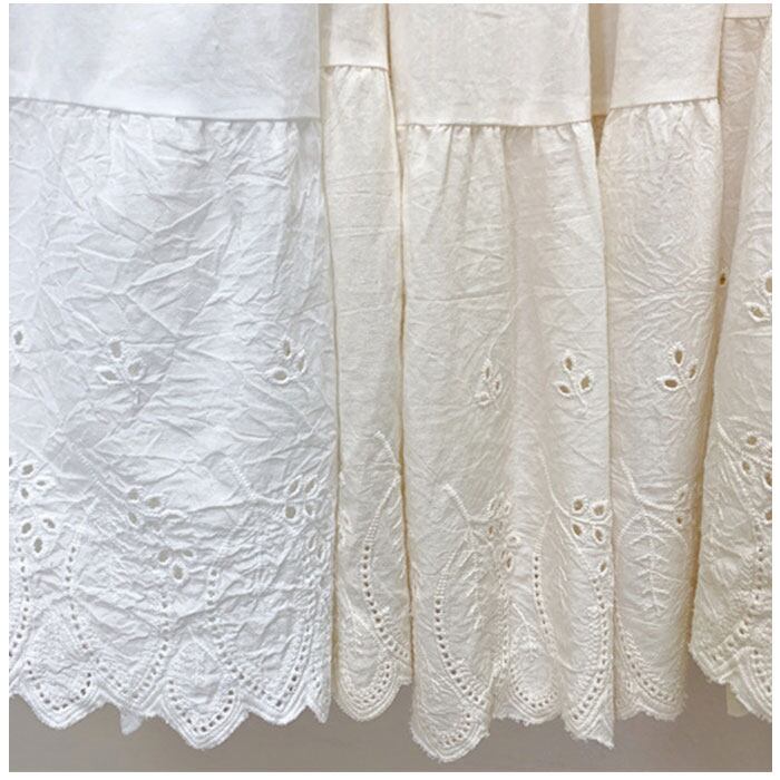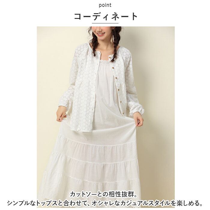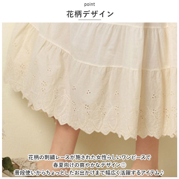 ・花柄の刺繍レースが施された女性らしいワンピースで春夏向けの爽やかなデザイン◎普段使いからちょっとしたお出かけまで幅広く活躍するアイテム♪