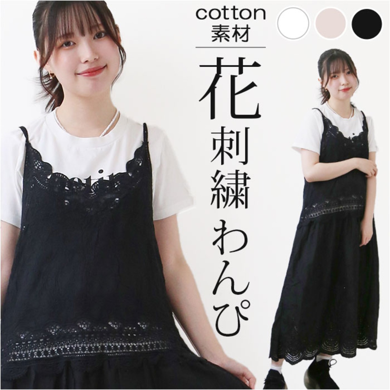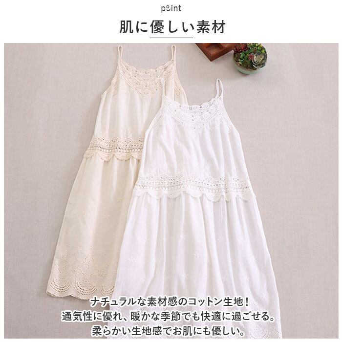 キャミワンピ ロング 通販 ワンピース レディース ミモレ丈 キャミワンピース キャミソールワンピース キャミソールワンピ ナチュラル レース インナーワンピース インナーワンピ コットン 綿麻 コットンリネン 春 夏 ペチコート レディースファッション