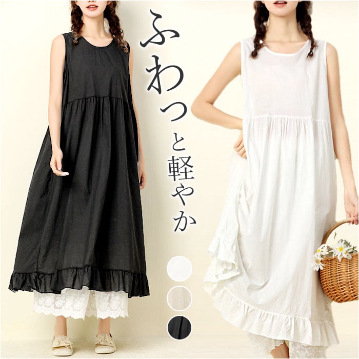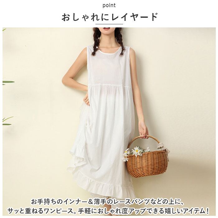 ・お手持ちのインナー&薄手のレースパンツなどの上に、サッと重ねるワンピース。手軽におしゃれ度アップできる嬉しいアイテム!