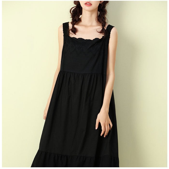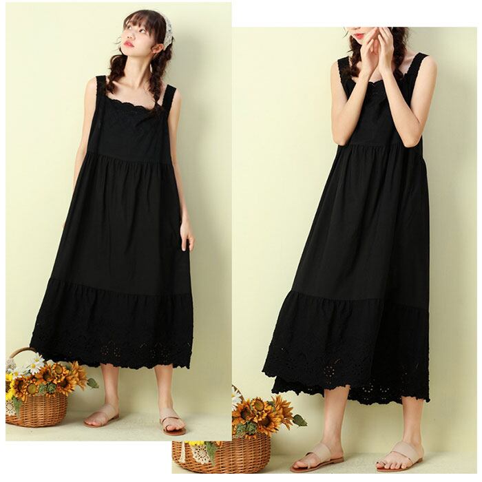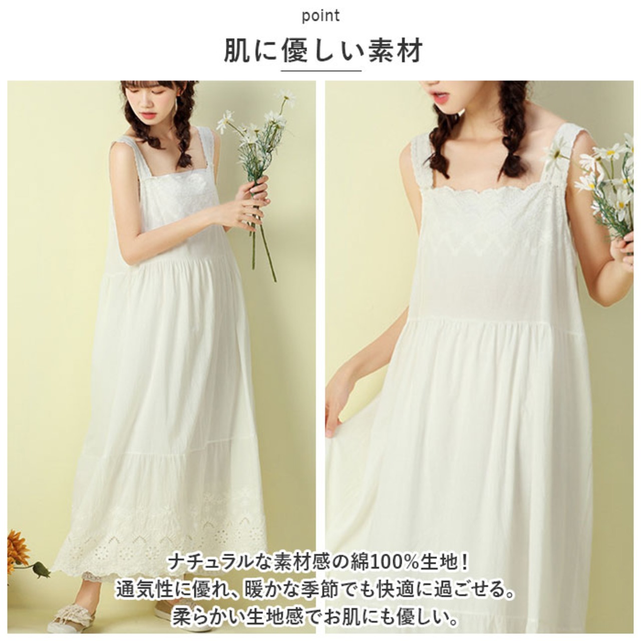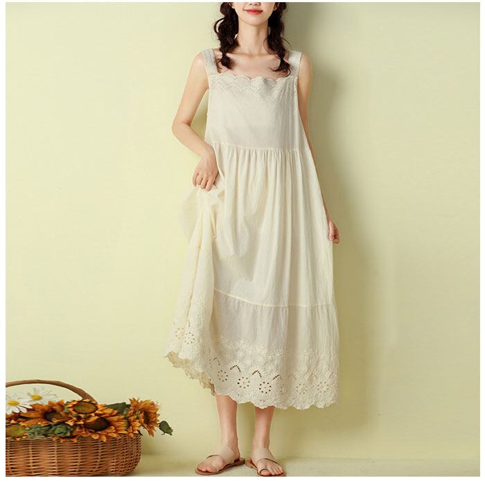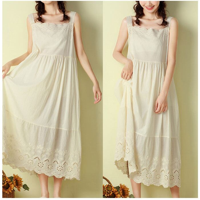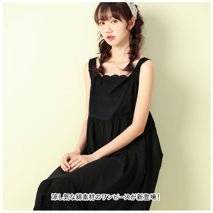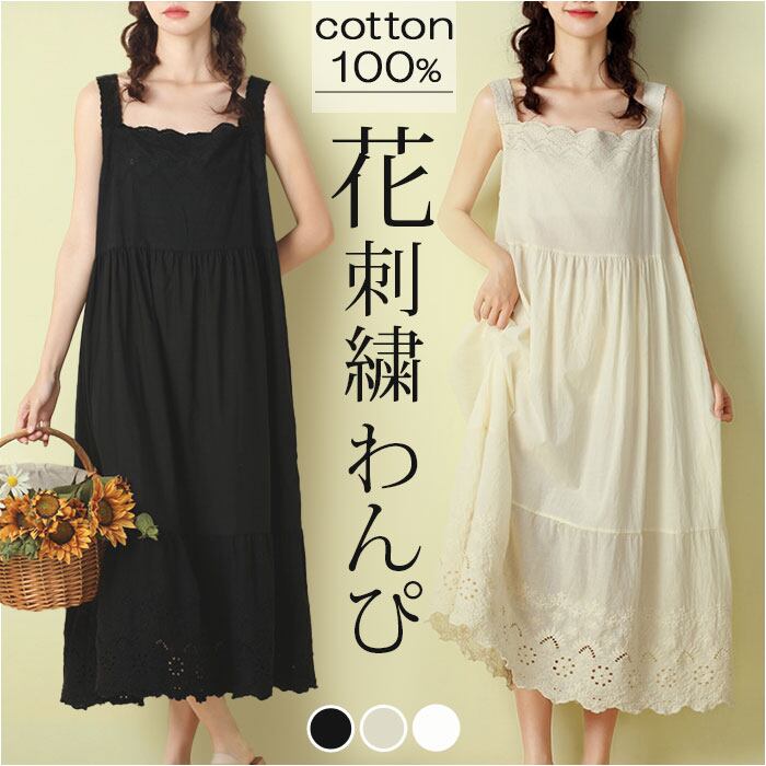 ワンピース ノースリーブ 通販 袖なし レディース 綿 コットン シンプル かわいい ミディアム丈 ミモレ ナチュラル カジュアル 刺繍 インナーワンピース インナーワンピ コットン ペチワンピ Aライン 春 夏 ペチコート レディースファッション
