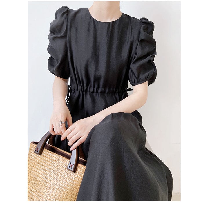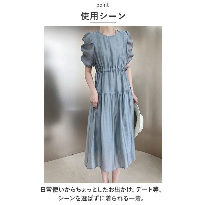 パフスリーブ ワンピース 通販 フレアワンピース ロングワンピース ドレス 大人 レディース 春 夏 バルーンスリーブ 五分袖 ボリュームスリーブ 半袖 きれいめ ゆったり ロング丈 フレア ボリューム袖 サマードレス シンプル 無地 レディースファッション