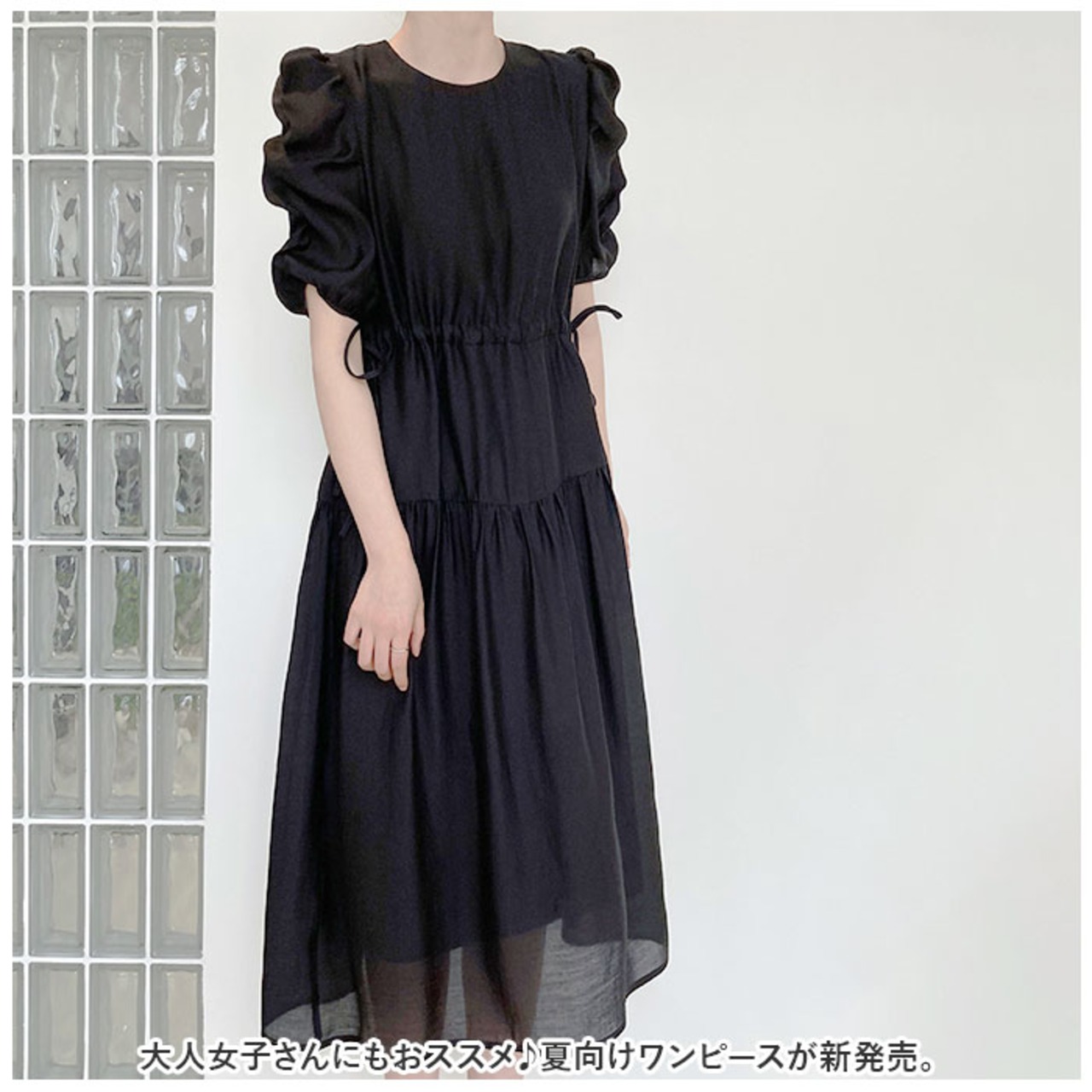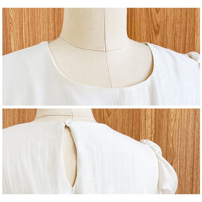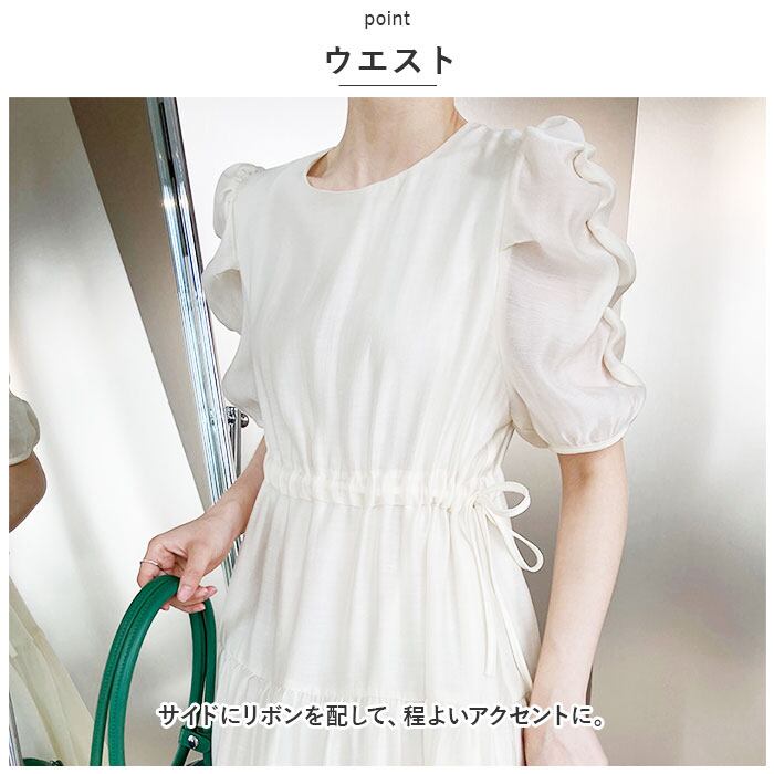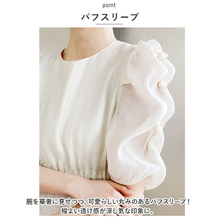 ・腕を華奢に見せつつ、可愛らしい丸みのあるパフスリーブ!程よい透け感が涼し気な印象に。