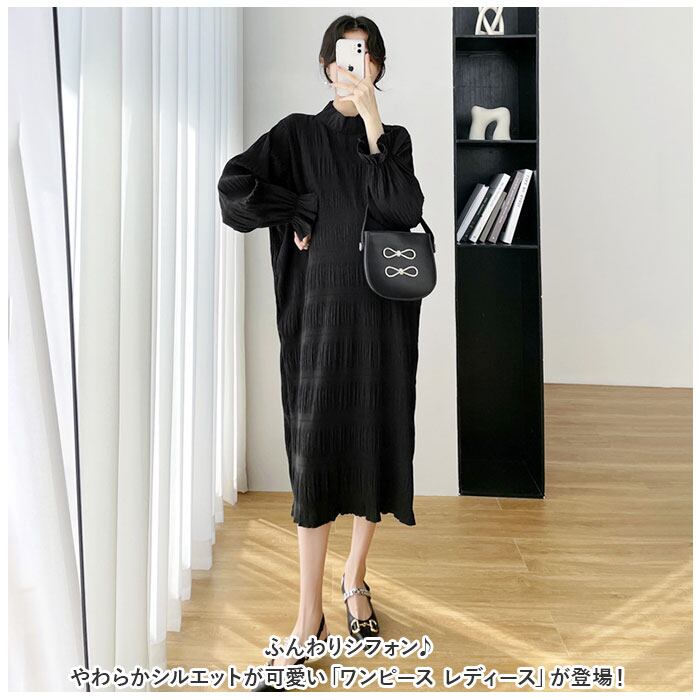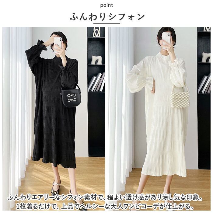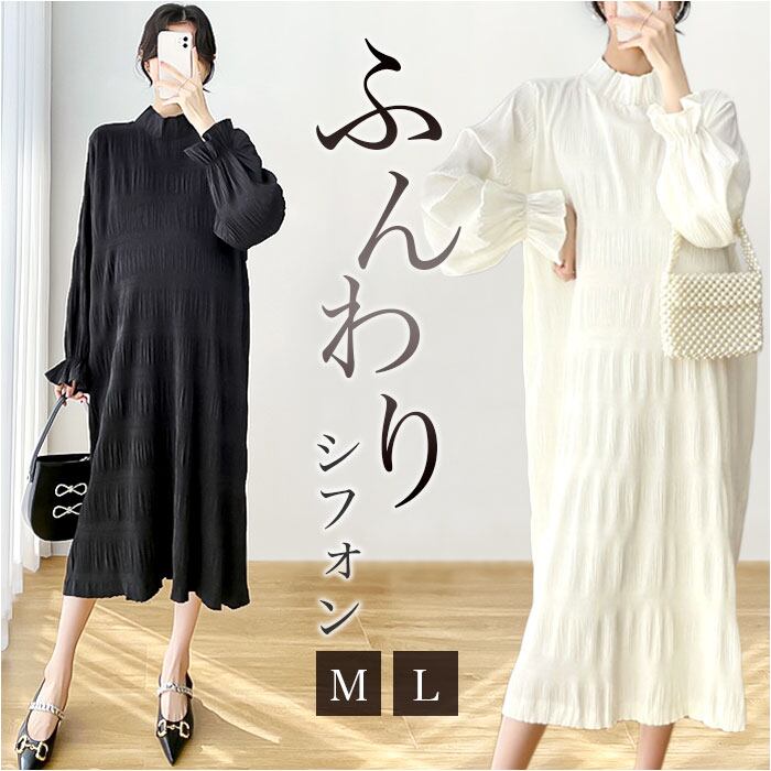 ワンピース 長袖 レディース 通販 シフォンワンピース ワンピ ロングワンピース ロングスカート シャーリング シアー ギャザー ロング ゆったり きれいめ 結婚式 お呼ばれ パーティ セレモニー マタニティドレス 夏 春夏 春 レディースファッション