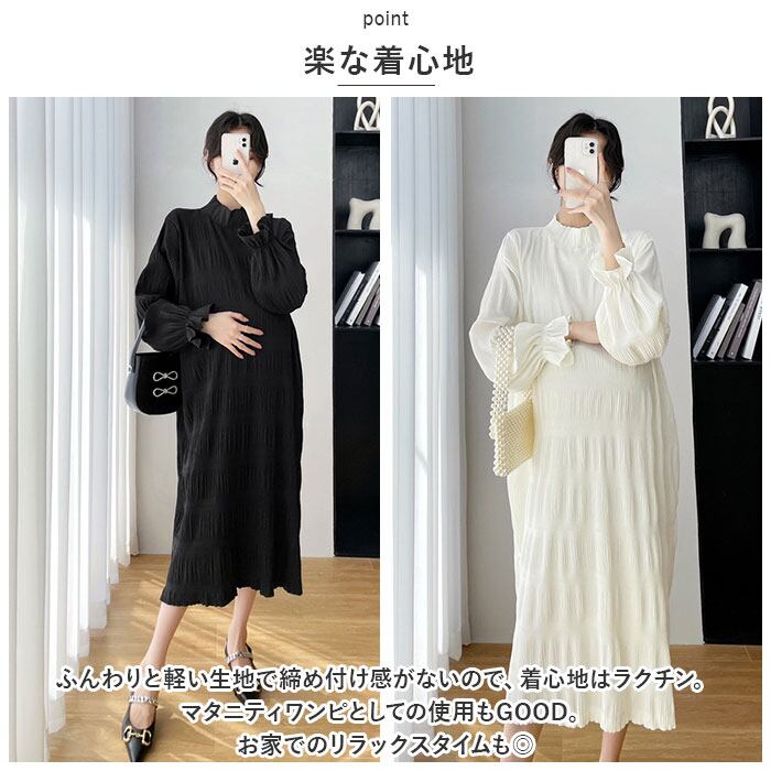 ・ふんわりと軽い生地で締め付け感がないので、着心地はラクチン。マタニティワンピとしての使用もGOOD。お家でのリラックスタイムも◎