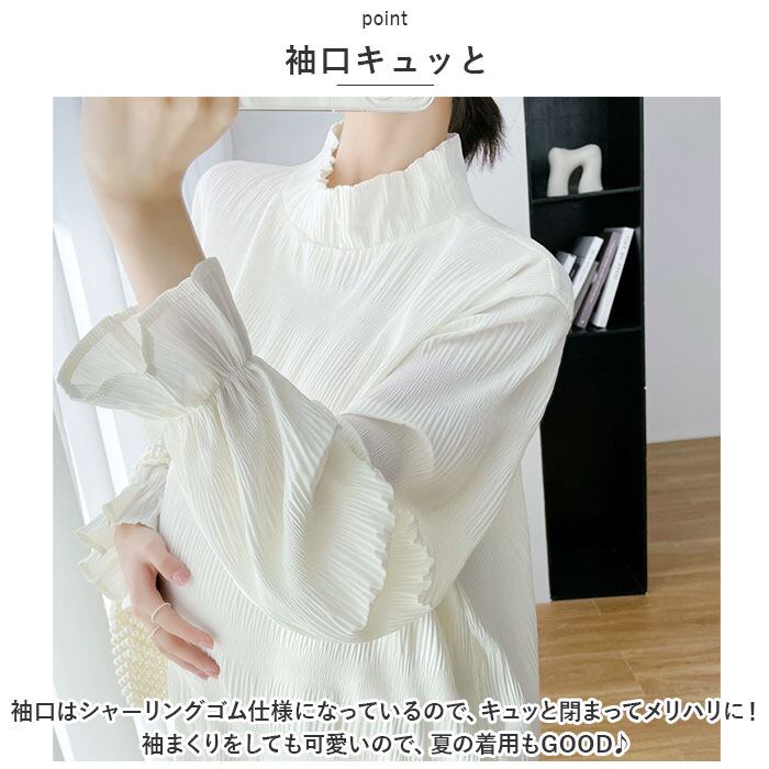 ・袖口はシャーリングゴム仕様になっているので、キュッと閉まってメリハリに!袖まくりをしても可愛いので、夏の着用もGOOD♪