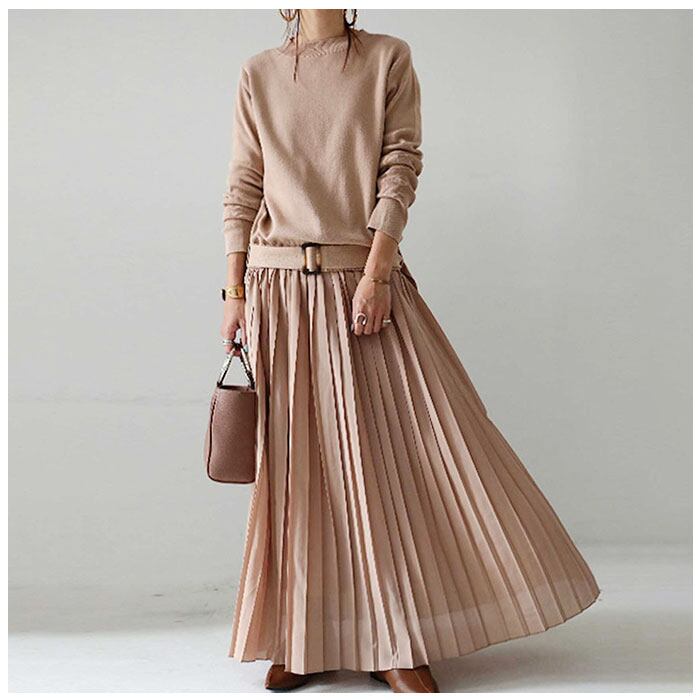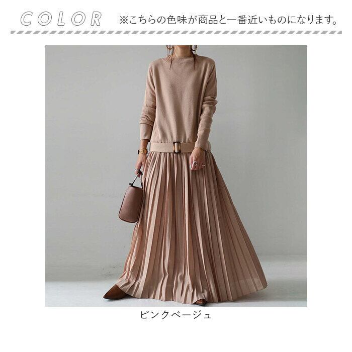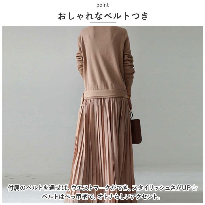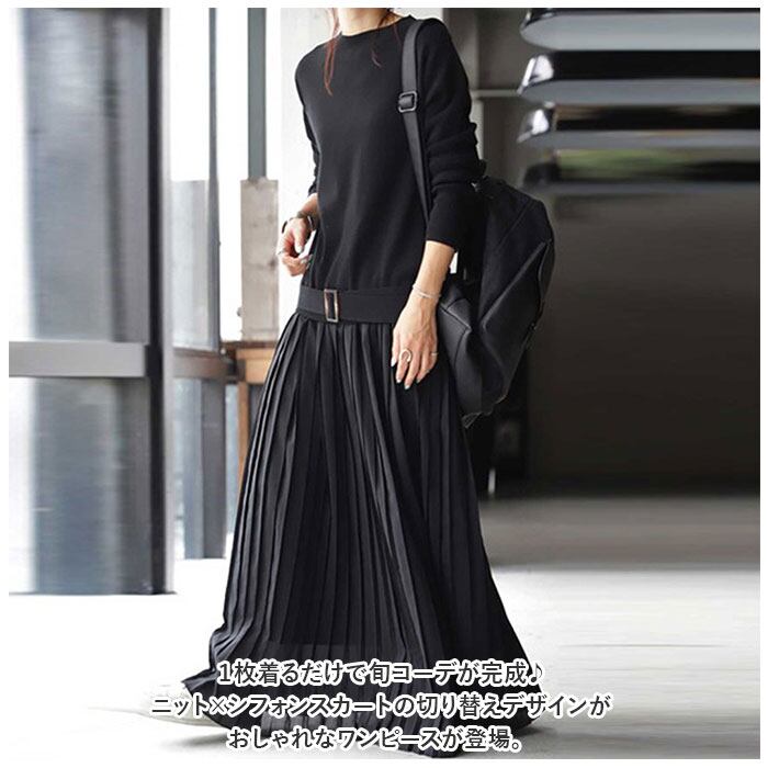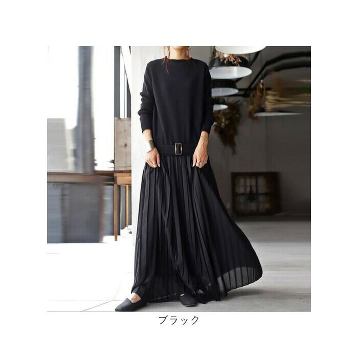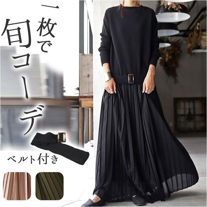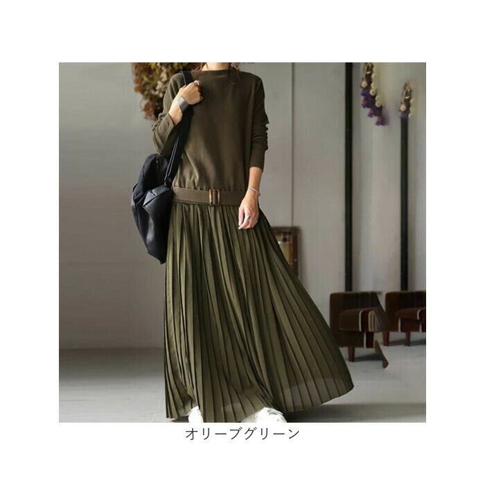 ロング ワンピース マキシ 丈 通販 ロングワンピース ワンピ プリーツワンピース 切り替え ウエストベルト ニット シンプル 無地 カジュアル ナチュラル 通勤 通学 入園式 卒業式 きれいめ 上品 春 秋 冬 おしゃれ オシャレ かわいい 可愛い ゆったり
