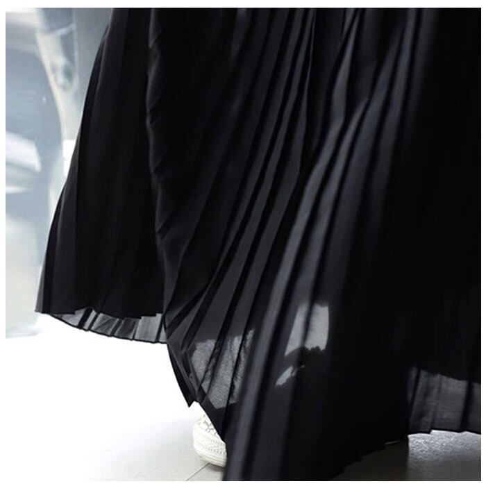 ・動く度にキレイに揺れるプリーツスカートが、縦ラインを強調。着るだけで細見え効果が期待できる◎