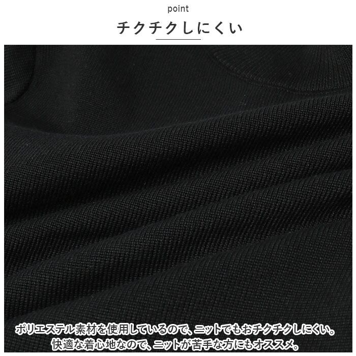 ・ポリエステル素材を使用しているので、ニットでもおチクチクしにくい。快適な着心地なので、ニットが苦手な方にもオススメ。