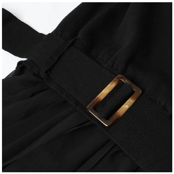 1枚着るだけで旬コーデが完成♪ニット×シフォンスカートの切り替えデザインがおしゃれな ワンピース が登場。