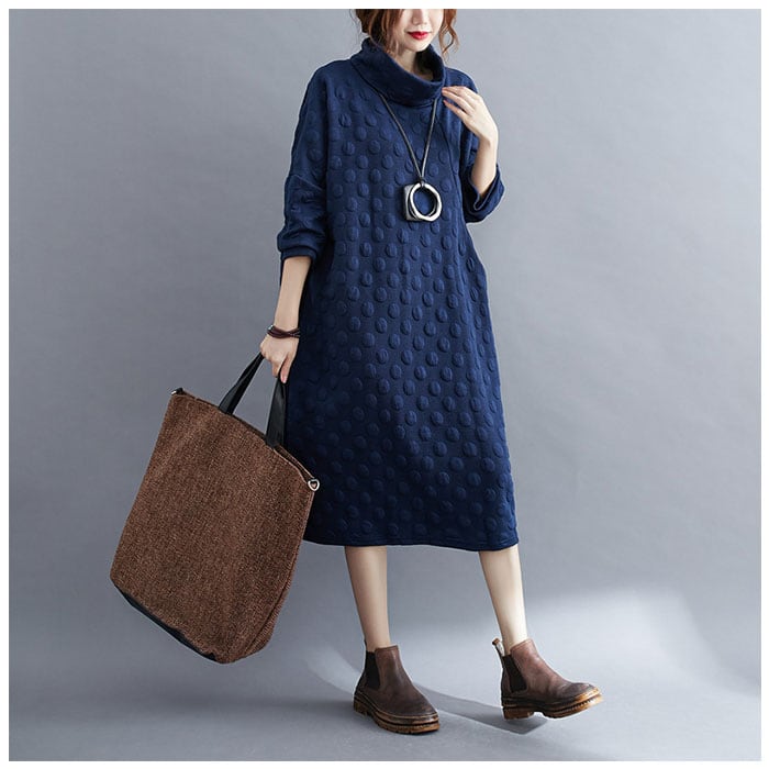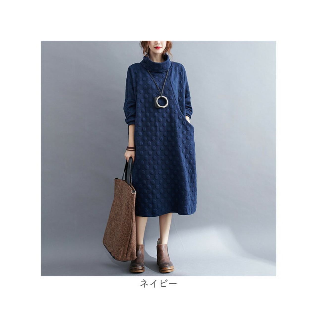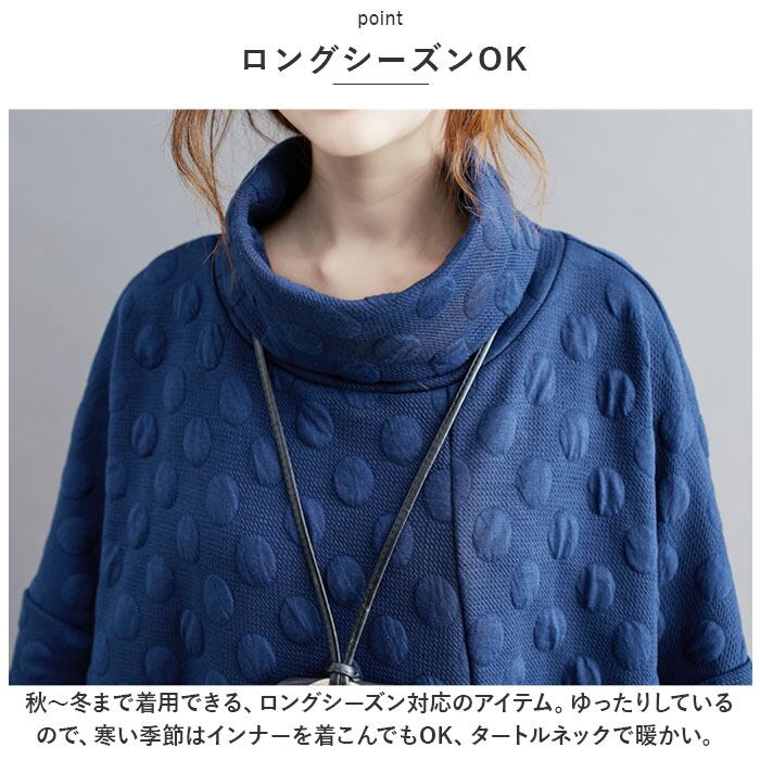 ・秋~冬まで着用できる、ロングシーズン対応のアイテム。ゆったりしているので、寒い季節はインナーを着こんでもOK、タートルネックで暖かい。