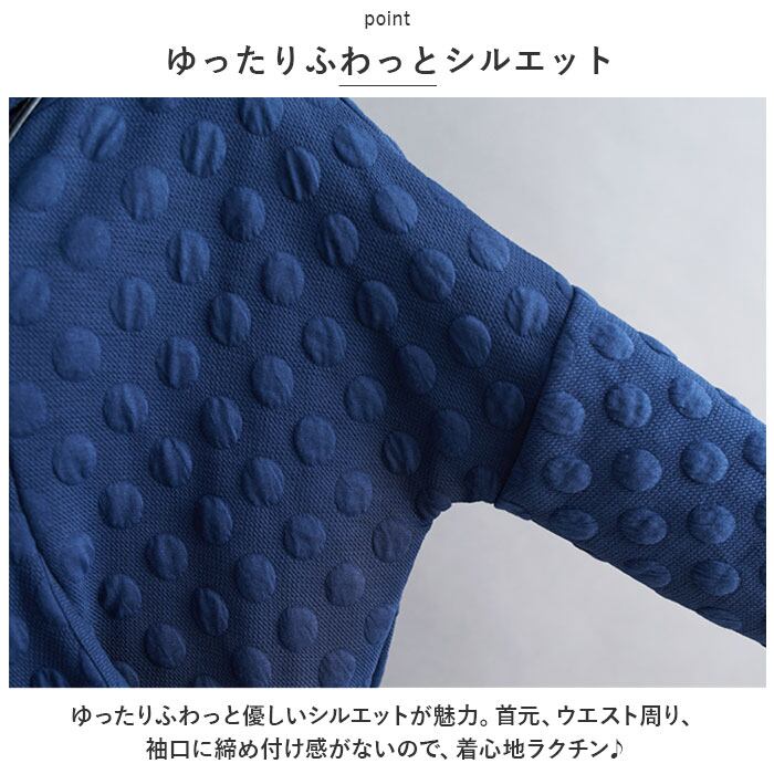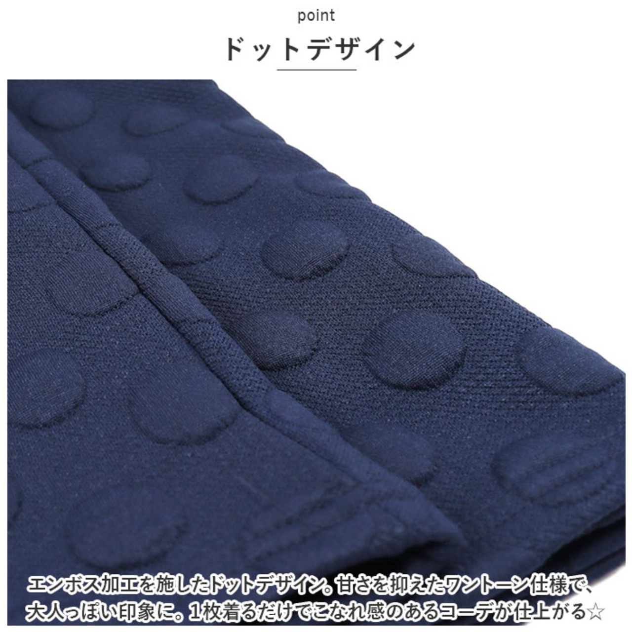 ・エンボス加工を施したドットデザイン。甘さを抑えたワントーン仕様で、大人っぽい印象に。1枚着るだけでこなれ感のあるコーデが仕上がる☆