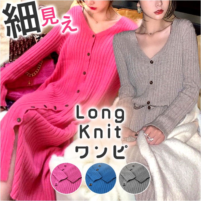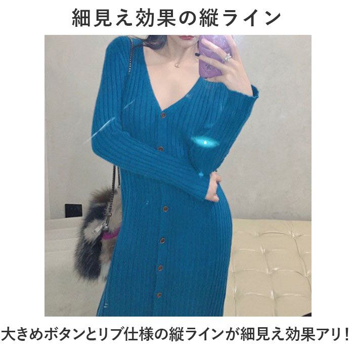 ロングワンピース 秋冬 通販 ワンピース ワンピ ニットワンピース 長袖 レディース ロング おしゃれ きれいめ カジュアル Vネック Iライン 前ボタン シンプル 無地 通勤 通学 お出かけ お呼ばれ 大人 上品 重ね着 ゆったり マタニティ スカート