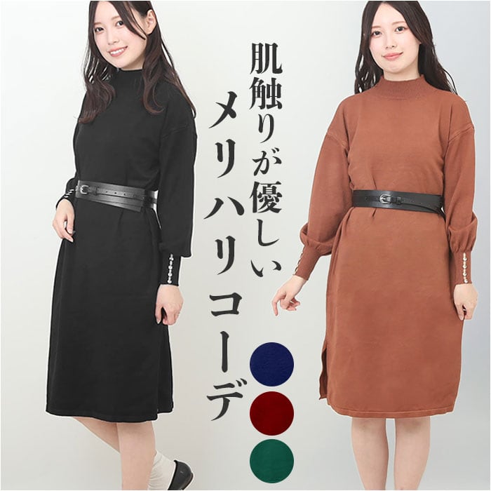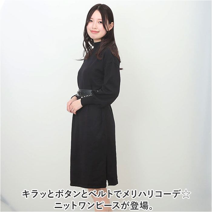 ・キラッとボタンとベルトでメリハリコーデ☆ニットワンピースが登場。