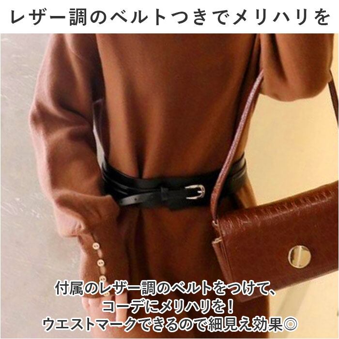・付属のレザー調のベルトをつけて、コーデにメリハリを!ウエストマークできるので細見え効果◎