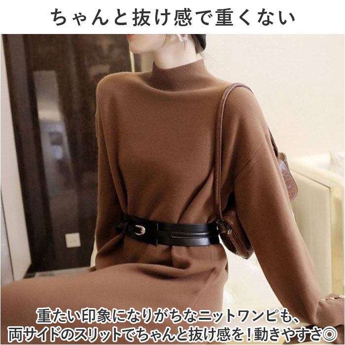 ・重たい印象になりがちなニットワンピも、両サイドのスリットでちゃんと抜け感を!動きやすさ◎