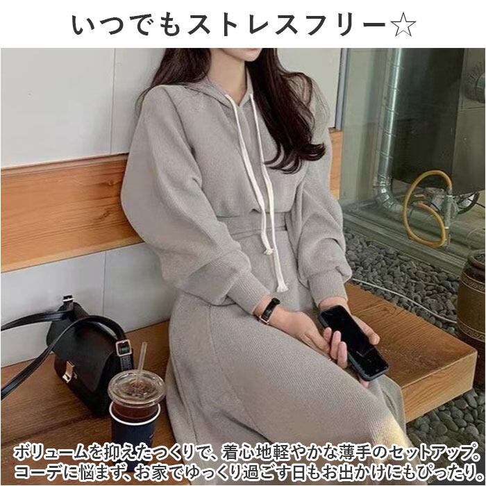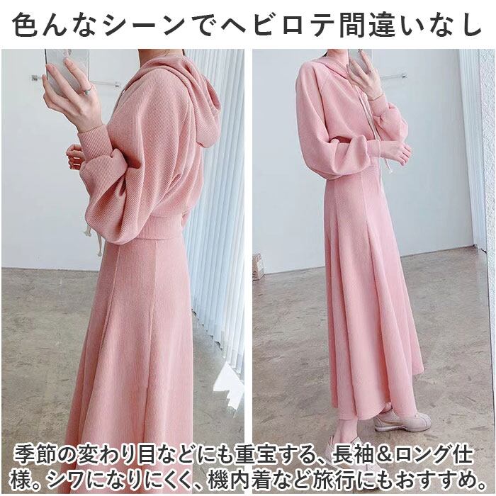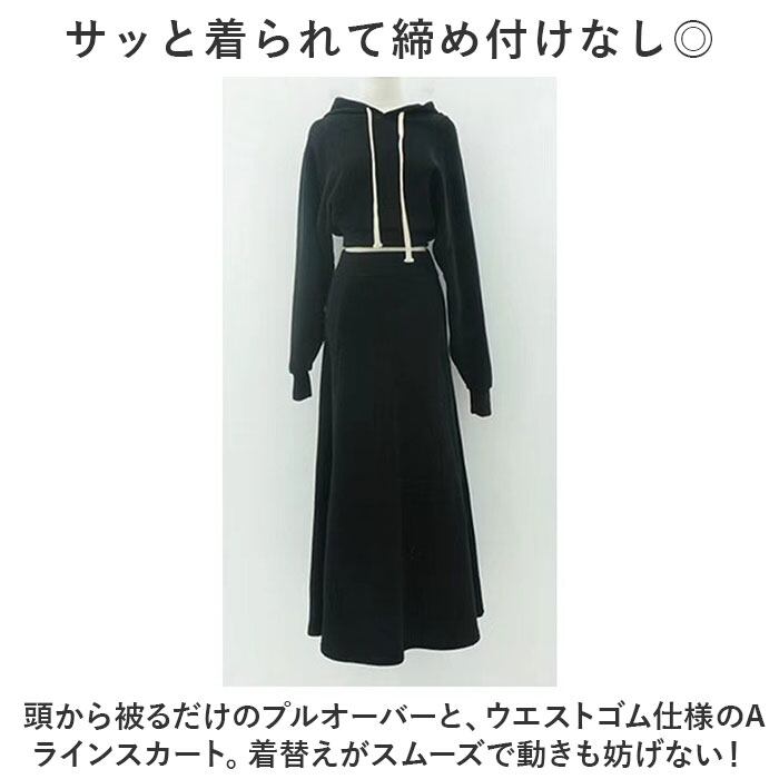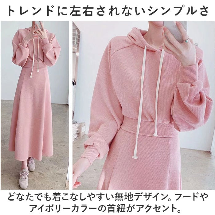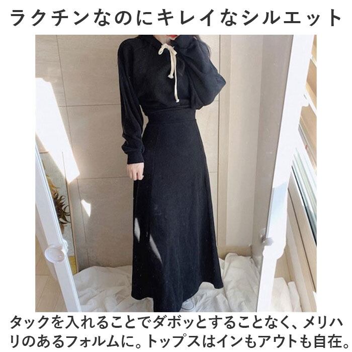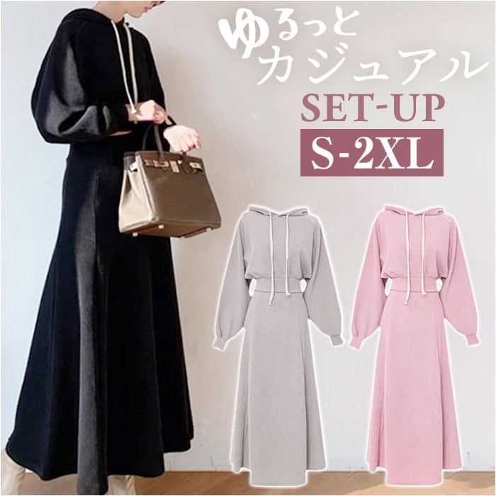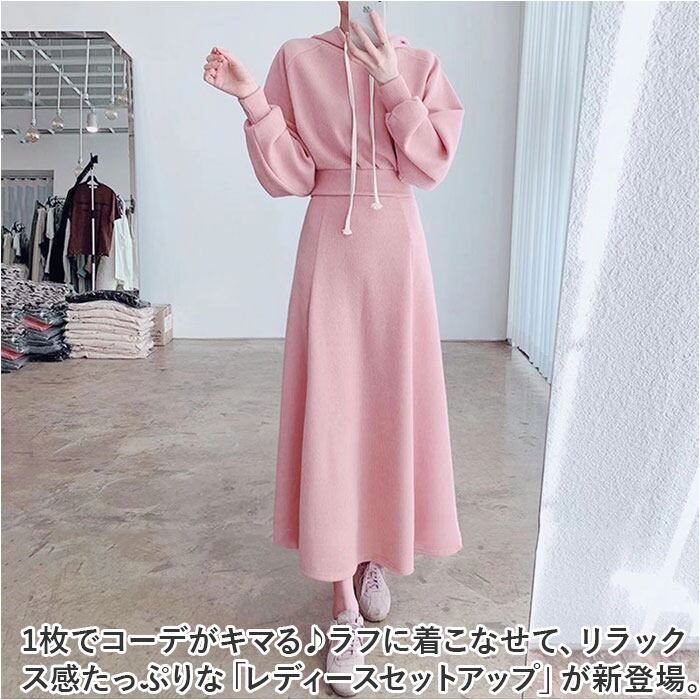 レディースセットアップ 冬 ルームウェア 通販 セットアップ プルオーバー パーカー トレーナー 部屋着 Aラインスカート Aライン ロング丈 ロング ゆったり 体型カバー きれいめ 長袖 シンプル カジュアル 無地 フード付き フード